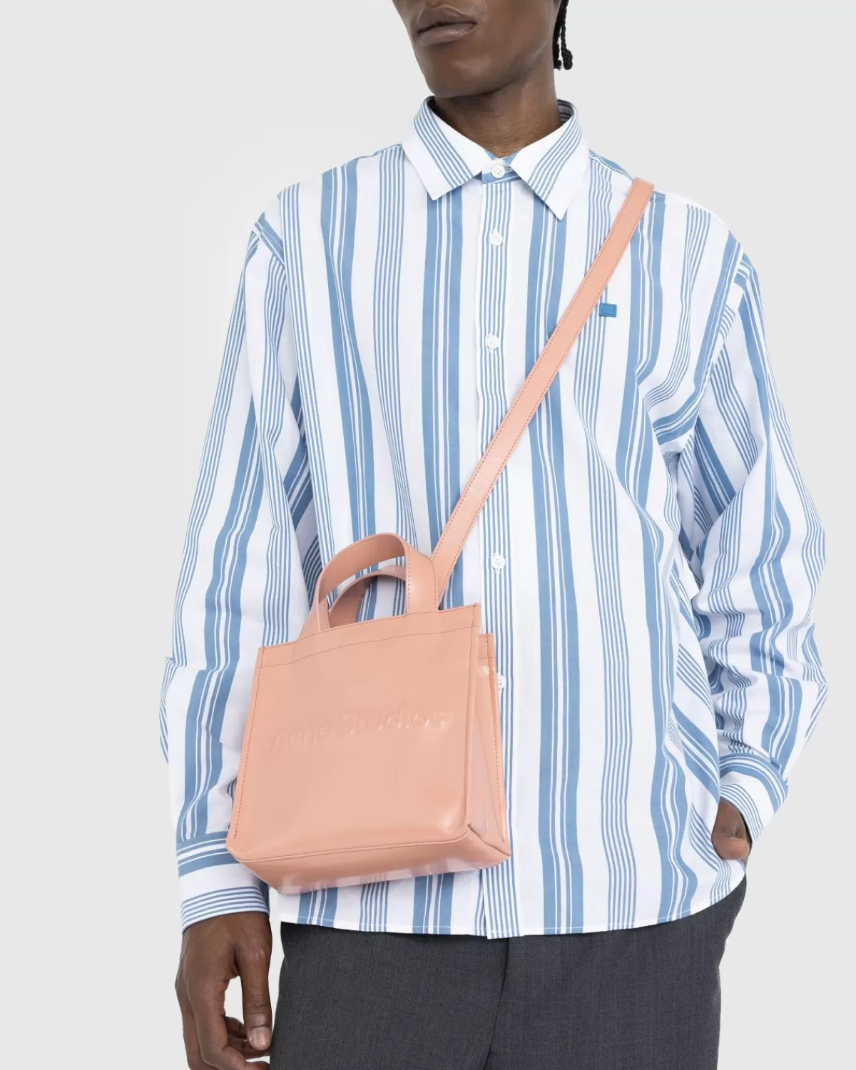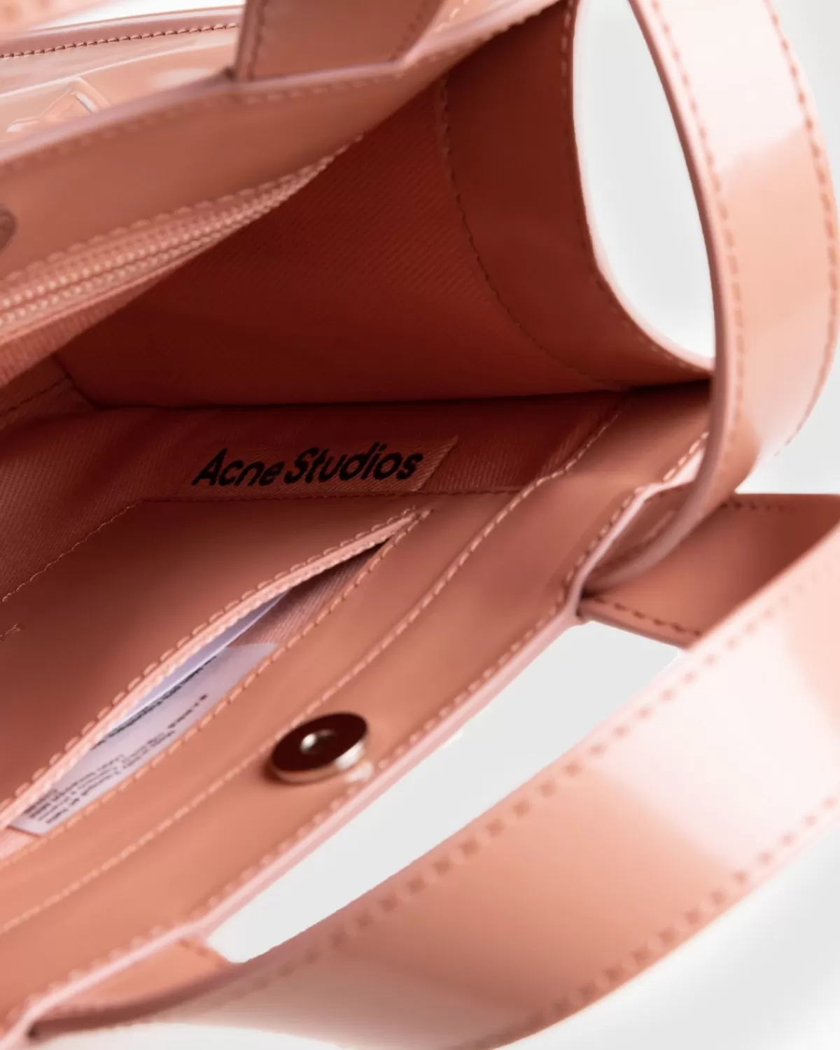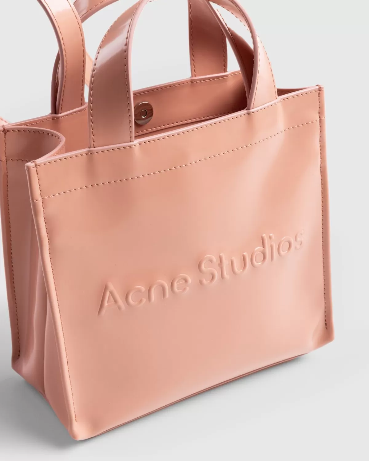 De Logo Mini Tote Wordt Compleet Geleverd Met Dubbele Handgrepen Aan De Bovenkant En Een Schouderband Om Ruimte Te Maken Voor Meerdere Draagopties. De Tas Is Verkrijgbaar In Een Lichtroze Kleurstelling En Heeft Een Glanzende, Licht Gestructureerde Afwerking, Met Een Acne Studios-Logo In Reliëf Op De Voorkant. Naast Het Grote Hoofdvak Bevat De Stijl Een Klein Ritsvak Aan De Binnenkant Voor Het Organiseren Van Specifieke Spullen.