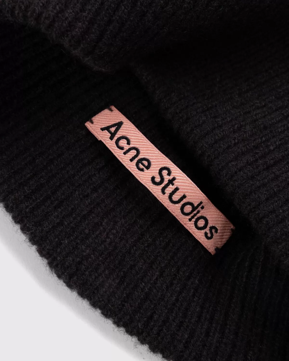 De Wollen Kasjmiermuts Van Acne Studios Is Een Zeer Veelzijdig Hoofddeksel, Met Een Monochromatisch Ontwerp Met Een Klein Logolabel. De Hoofddekselstijl Heeft Een Geribbelde Textuur En Een Opstaande Rand.