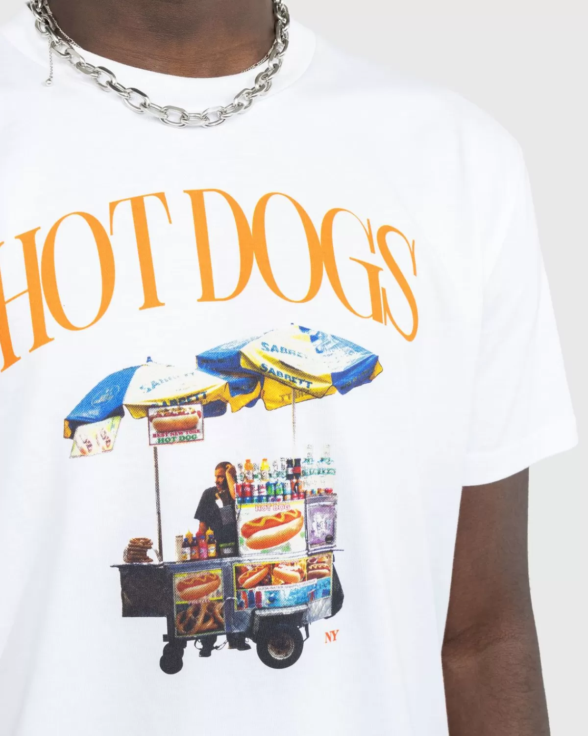 Hoewel De Hot Dog Oorspronkelijk In Duitsland Werd Uitgevonden, Is Hij Uitgegroeid Tot Een Vast Onderdeel Van De On-The-Go-Dinerscene Van New York. Dit T-Shirt Met Korte Mouwen Is Een Samenwerking Met At The Moment En Heeft Een Biologisch Afbreekbare Grafische Print Op De Voorkant Van Een Klassiek Hotdogkarretje Met Drankjes En Pretzels Op Sleeptouw.