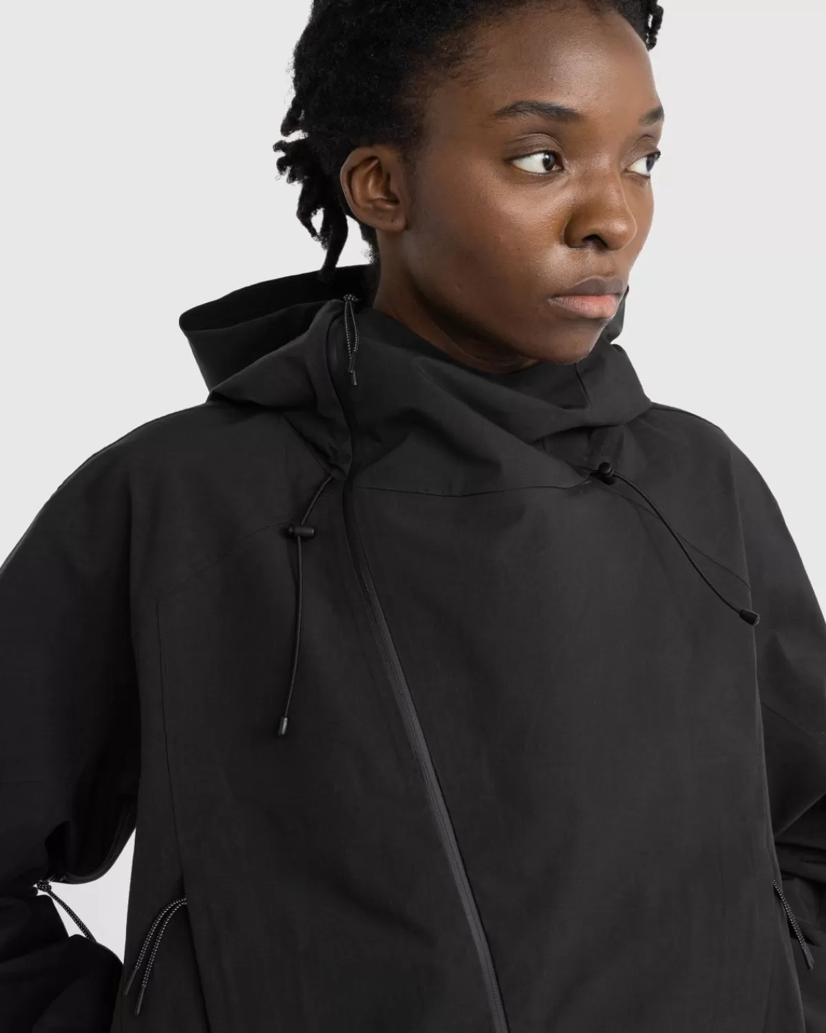 De Manifold Jacket Wordt Gedefinieerd Door Jl-A.L’S Kenmerkende Ontwerptechniek Met Panelen, Ontworpen Voor Bewegingsgemak En Algehele Functionaliteit. Het Innovatieve Stuk Bestaat Uit Twee Aan Elkaar Genaaide Halve Jasjes En Is Gemaakt Van Ultralicht Getextureerd Nylon, Met Drukknopen Waarmee De Drapering Kan Worden Aangepast. Aan De Voorkant Van Het Kledingstuk Zijn Veilige Zakken Met Drukknoopsluiting Verwerkt Voor Extra Veiligheid Bij Het Vervoeren Van Kleine Waardevolle Spullen.