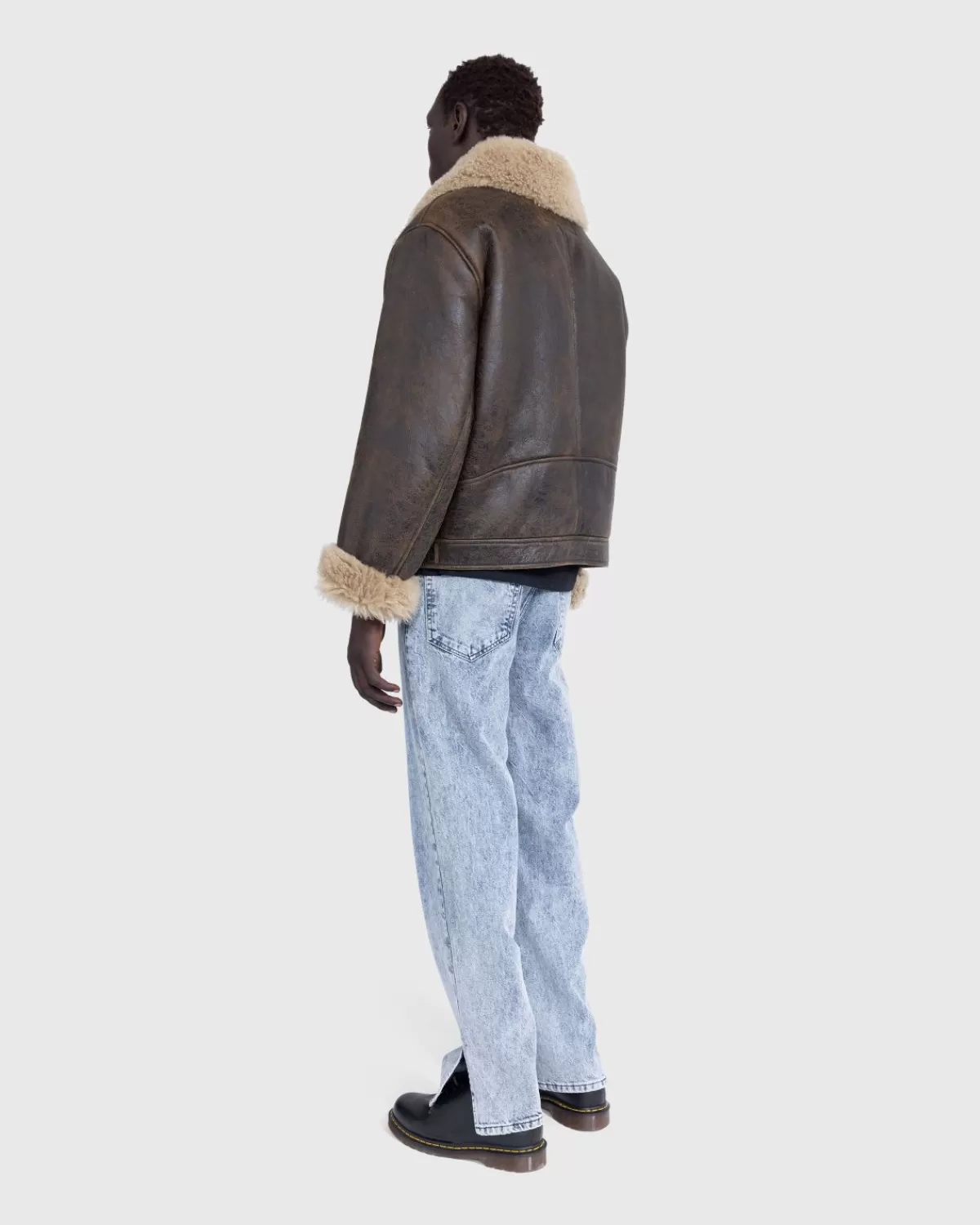 Het Shearling Jacket Van Acne Studios Is Het Toonbeeld Van Luxe, Gemaakt Van Lamsschapen En Eersteklas Suèdeleer. Het Kledingstuk Is Gebaseerd Op Klassieke Pilotenstijlen En Is Uitgerust Met Een Ritssluiting Aan De Voorkant En Een Kraag Met Dubbele Band En Gesp, Naast Twee Voorzakken Voor Het Verwarmen Van Handen En Het Dragen Van Kleine Spullen.