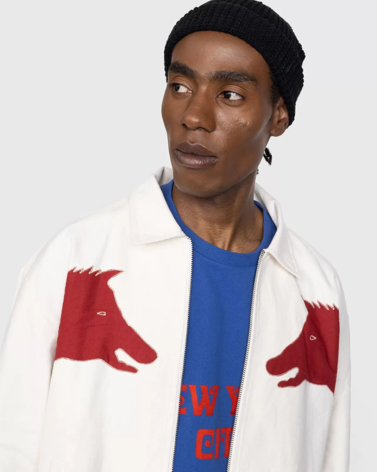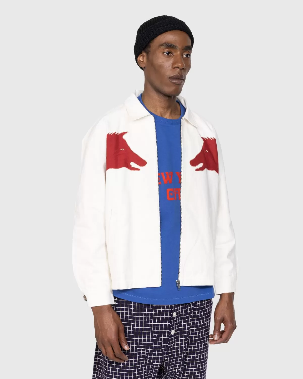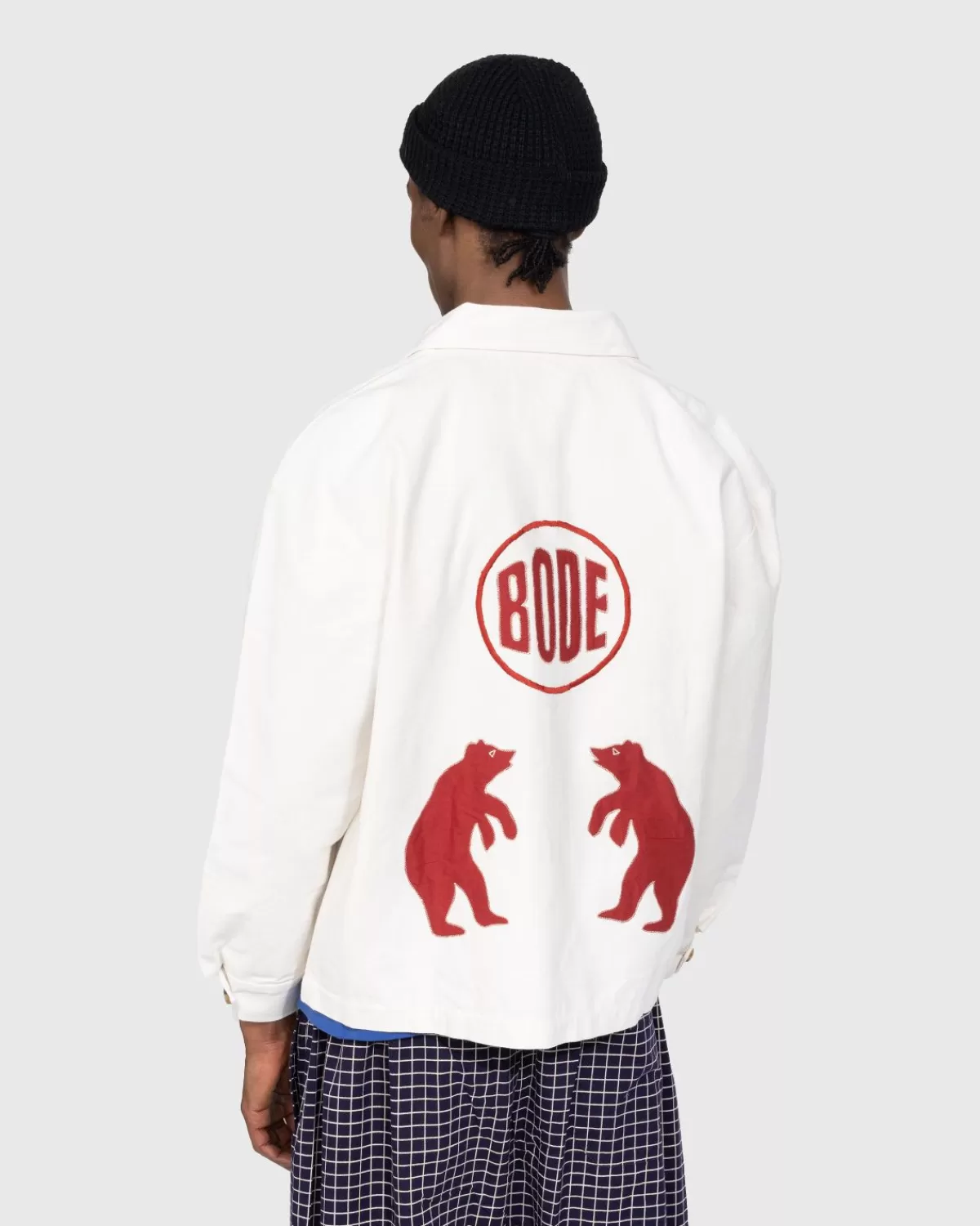Dit Opvallende Bode-Jack Is Geïnspireerd Op Een Set Vlaggen Uit De Jaren 1900-1910, Met Dierenapplicaties, Hier Met De Hand Aangebracht Op De Voor- En Achterkant Van Het Kledingstuk. De Zwijnen- En Berenmotieven Zijn Overgenomen, Want Op De Achterkant Is Ook Een Bijpassend Bode-Logo Verwerkt. Het Jack Is Gebaseerd Op Traditionele Werkkleding En Heeft Een Boxy-Pasvorm, Gedetailleerd Met Knoopmanchetten En Paspelzakken Aan De Voorkant.