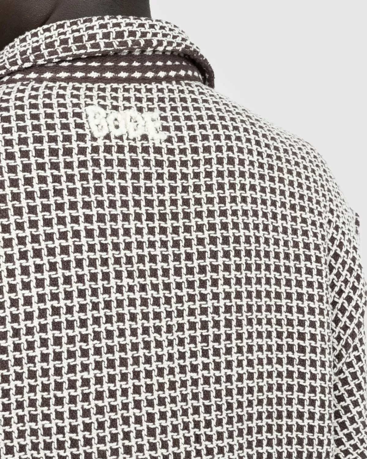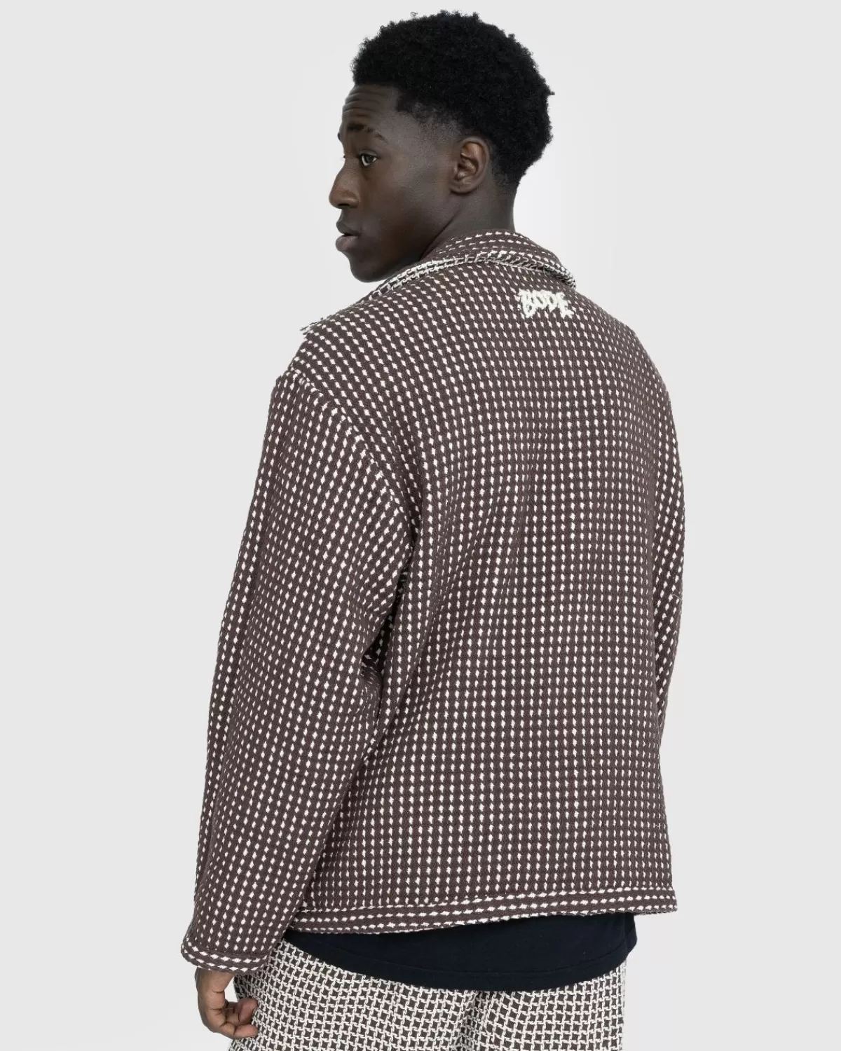 Deze Bode-Bovenkledingstijl Is Geïnspireerd Op Een Wafeldeken Uit De Jaren Vijftig. Het Merk Heeft Op Zijn Beurt De Originele Stof Opnieuw Gebruikt, Met Een Geborduurd Logo Op De Achterkant Van Het Silhouet. Het Jack Is Gemaakt Van 100% Katoen En Heeft Een Klassieke Kraag, Een Knoopsluiting Aan De Voorkant En Vier Opgestikte Zakken Aan De Voorkant.
