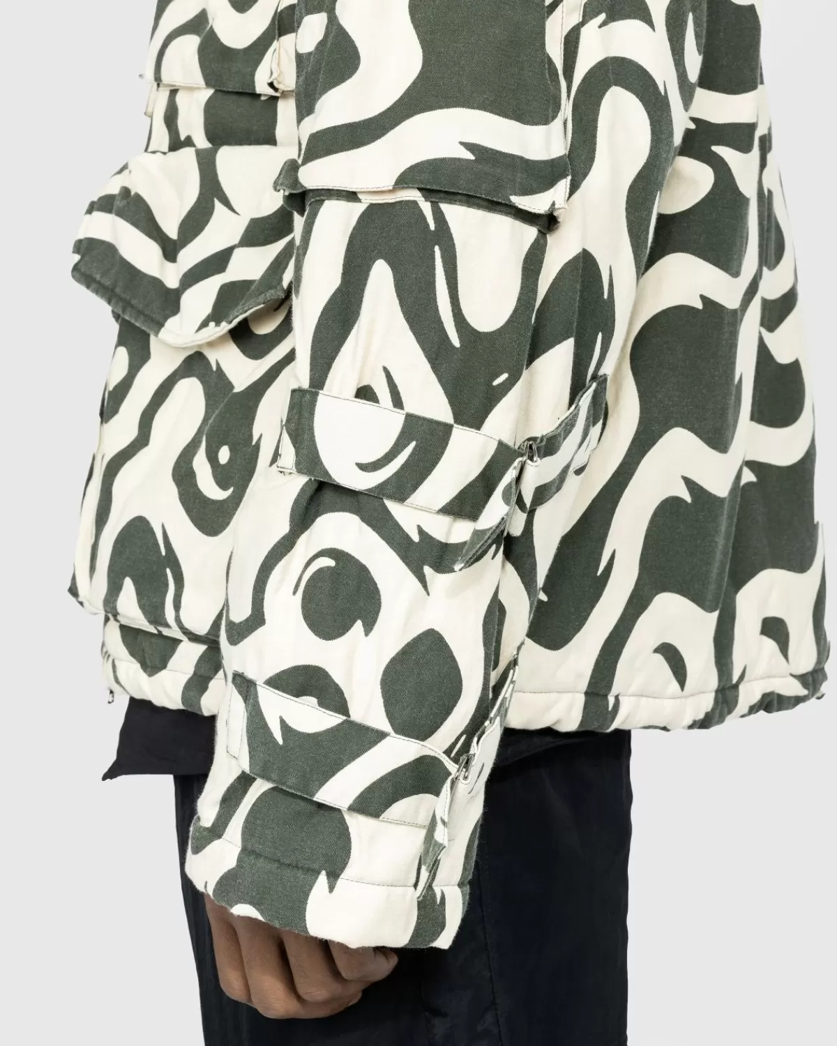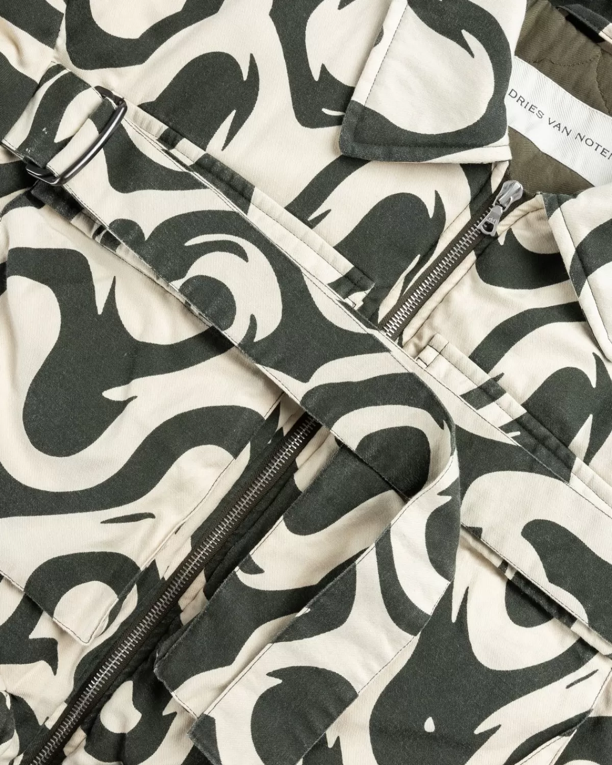 Het Vonac Bis-Jack Is Een Opvallende Bovenkledingstijl Van Dries Van Noten Met Een Boeiend All-Over Motief. Het Ontspannen Kledingstuk Is Gemaakt Van Een Katoen-Polyestermix En Is Uitgerust Met Meerdere Klepzakken Aan De Voorkant En Op De Mouwen , Terwijl Het Gedetailleerd Is Met Verstelbare Bandjes Op De Borst En Mouwen.