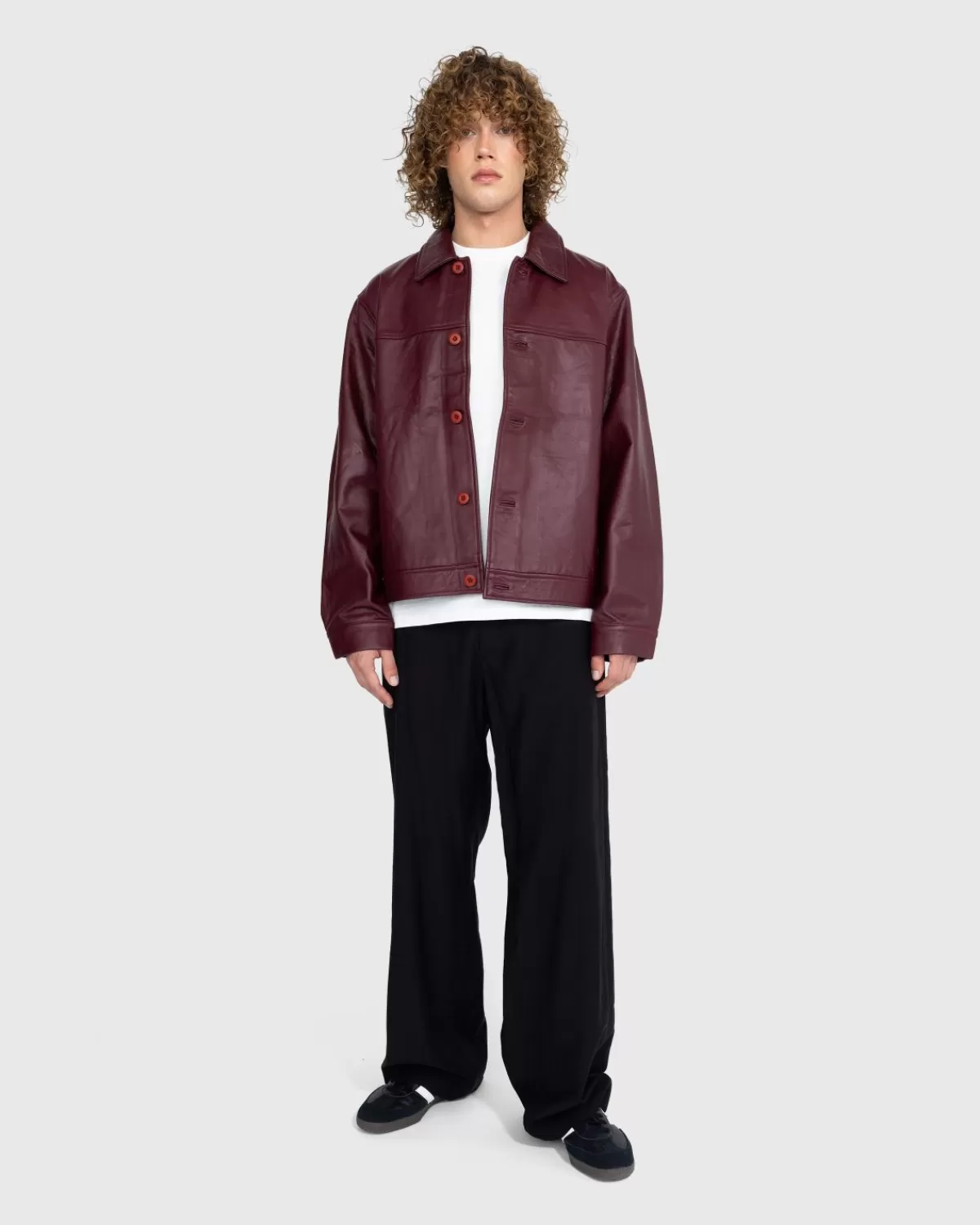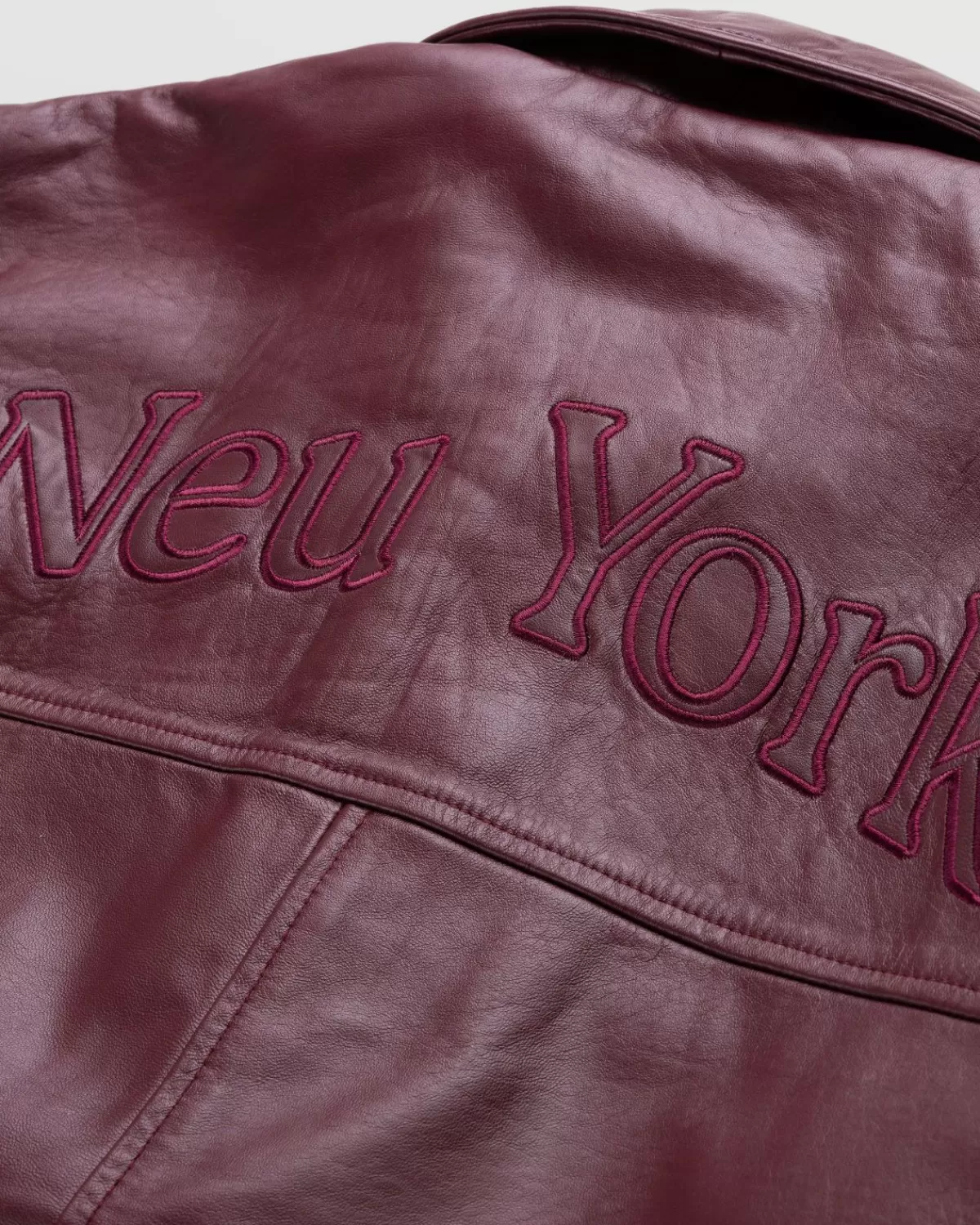Dit Leren Jack In Beperkte Oplage Is Gemaakt Van Zachte Schapenvacht En Maakt Deel Uit Van Onze Neu York-Collectie. Het Ontwerp Is Geïnspireerd Op Traditionele Werkkledingsilhouetten En Heeft Een Knoopsluiting, Twee Schuine Zijzakken En Knoopmanchetten. De Binnenkant Is Afgewerkt Met Een Satijnen Voering, Een Interne Ophanglus En Een Binnenzak, Terwijl De Achterkant Van De Jas Is Gedetailleerd Met Een Geborduurd Neu York-Logo.