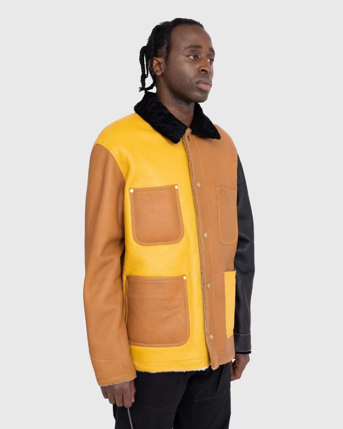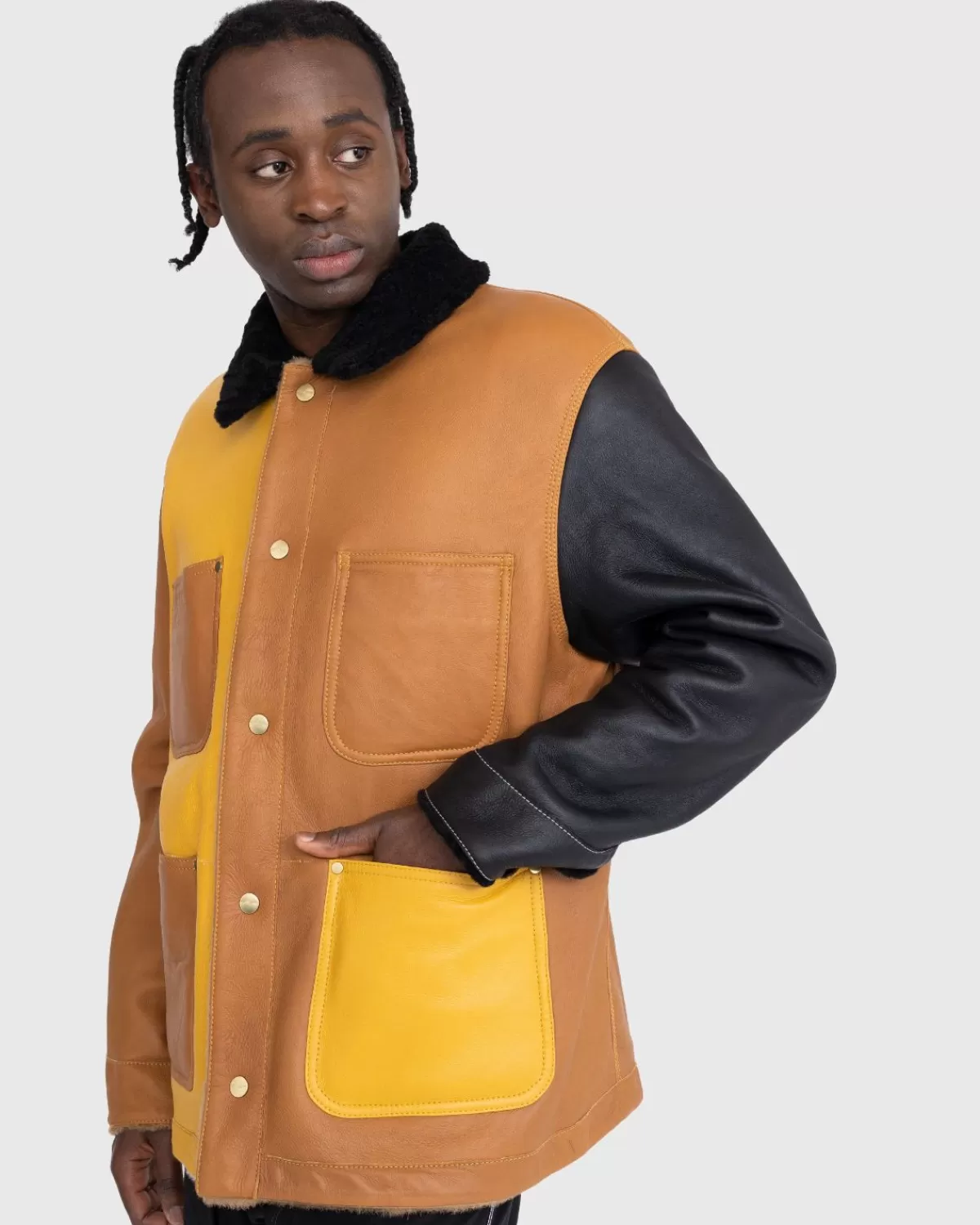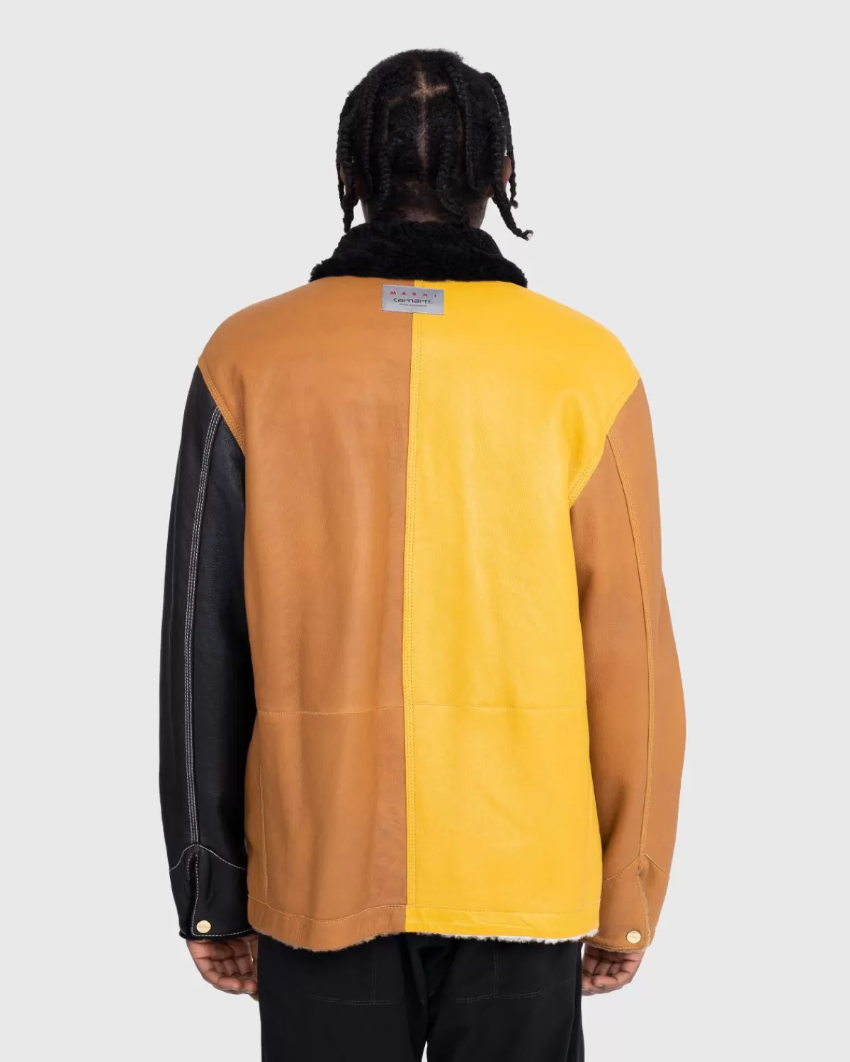 Deze Marni X Carhartt Wip-Stijl Biedt Dubbel Zoveel Plezier, Met Een Omkeerbaar Ontwerp Met Kleurblokken Dat Nieuw Leven Blaast In Een Kenmerkend Carhartt-Silhouet. De Jas Is Gemaakt Van Zacht Lamsschapen Aan De Ene Kant En Soepel Leer Aan De Andere Kant, Omdat Elke Jas Is Uitgerust Met Meerdere Zakken Voor Het Opbergen Van Kleine Benodigdheden. Het Heeft Een Drukknoopsluiting En Merklogo’S Op De Borst En De Nek Om De Allereerste Marni X Carhartt Wip-Samenwerking Aan Te Geven.