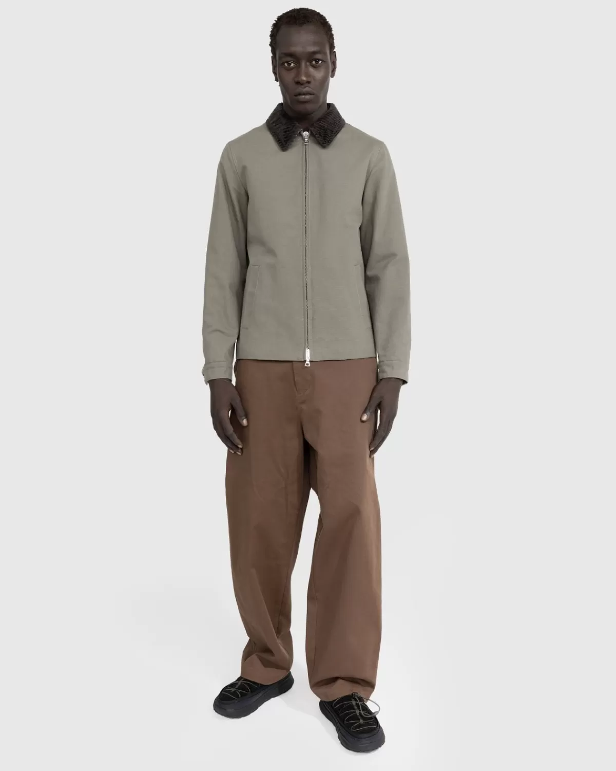 De Owen Is Geïnspireerd Op Werkkleding En Is Gemaakt Van Stevig Katoenen Canvas, Met Een Contrasterende Corduroy Kraag. Het Is Gesneden Voor Een Ontspannen Pasvorm En Heeft Een Tweewegritssluiting Aan De Voorkant, Manchetten Met Knopen En Steekzakken Aan De Zijkanten. Verkrijgbaar In Een Neutrale Grijze Kleurstelling, Zodat U De Jas Gemakkelijk Van Seizoen Tot Seizoen Kunt Aankleden.