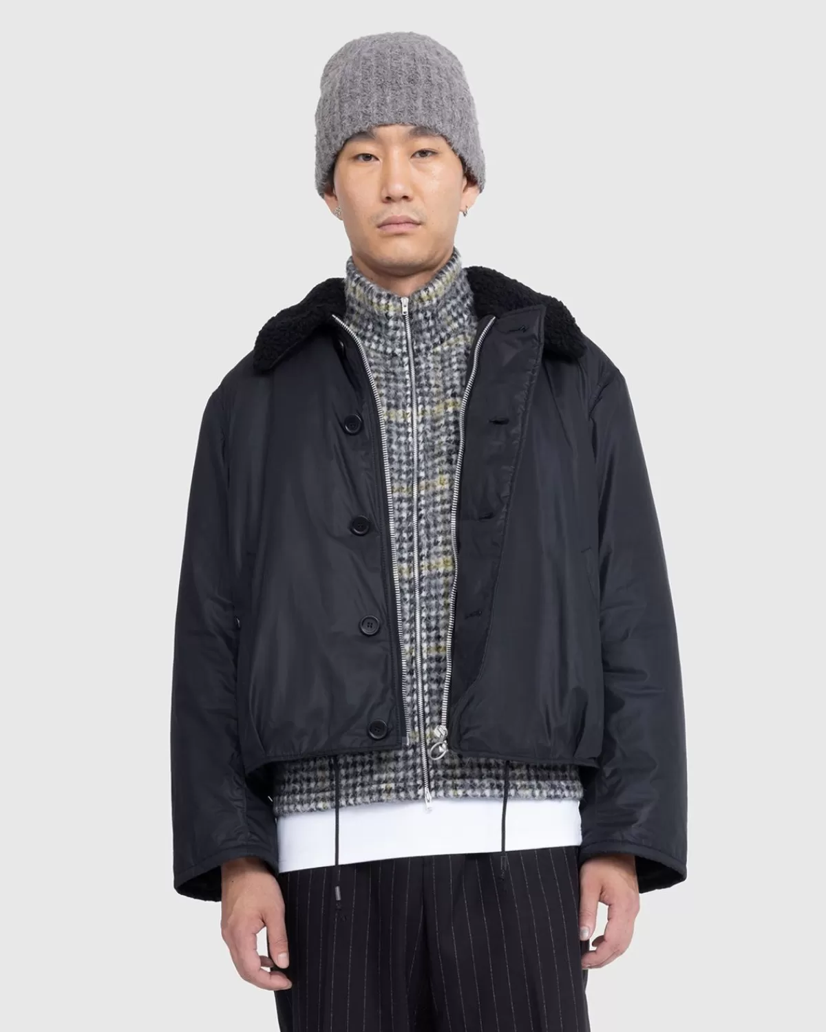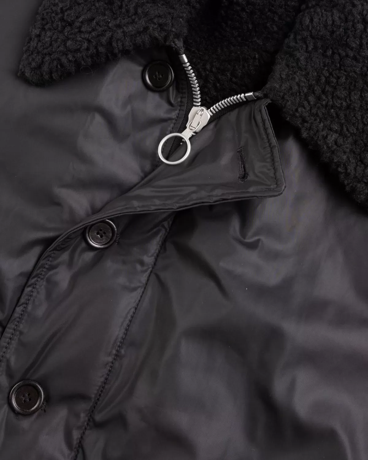 De Grizzly Jacket Is Een Verbeterde Versie Van Een Bekende Bovenkledingstijl. Het Kledingstuk Is Gemaakt Van Een Waterafstotende Technische Italiaanse Stof En Is Versierd Met Een Stormflapsluiting, Leren Knopen En Een Kraag Van Imitatiebont. Het Heeft Een Korte, Boxy-Pasvorm En Is Gedetailleerd Met Verstelbare Leren Trekkoorden En Steekzakken Met Knoop Om Het Ontwerp Compleet Te Maken.