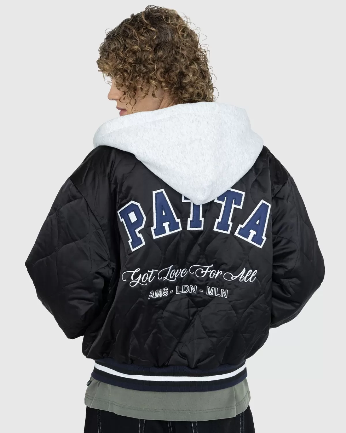 De Bomber Met Capuchon Combineert Streetwear En Sportkleding En Is Versierd Met Patta-Iconografie Op De Voor- En Achterkant Van Het Silhouet. Het Is Gemaakt Van Een Mix Van Katoen En Polyester, Met Een Polyester Voering Van Het Patta-Merk. Details Zijn Onder Meer Een Capuchon Met Contrasterend Trekkoord, Gestreepte Ribgebreide Randen, Twee Buitenzakken En Een Binnenzak.