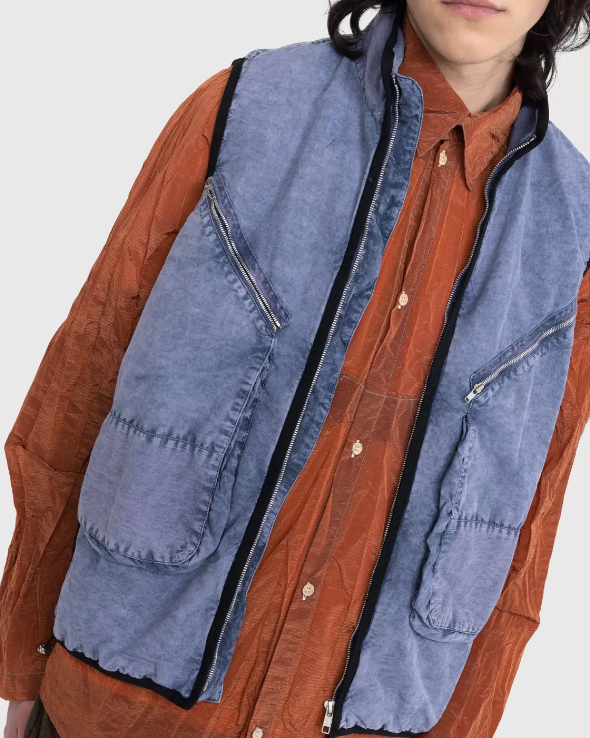 Het Glumur Vest Is Een Laagjeskledingstuk Voor Meerdere Seizoenen, Gemaakt Van Een Mix Van Katoen, Linnen En Nylon. Het Kledingstuk Is Gesneden Voor Een Standaard Boxy-Pasvorm En Heeft Een Opvallende Zure Wassing En Een Contrasterende Zwarte Bies. Het Is Ontworpen Met Een Ritssluiting Aan De Voorkant En Een Verstelbare Zoom Met Trekkoord, Met Diepe Plooizakken Aan De Voorkant Van Het Silhouet.
