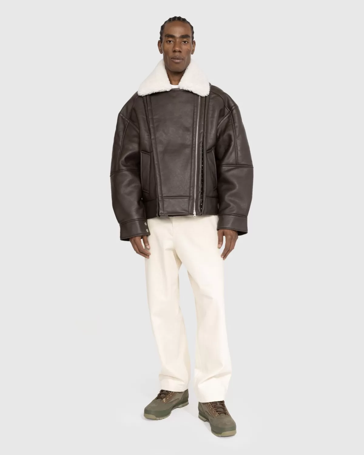 Het Hook And Eye Shearling Jacket Is Een Opvallende Y/Project Bovenkledingstijl, Voornamelijk Gemaakt Van Polyester. Het Kledingstuk Is Gemaakt Van Kunstleer En Kunstschaar En Wordt Gekenmerkt Door De Unieke Sluiting Met Haak- En Oogsluiting En Ritsen, Waardoor Verschillende Stylingopties Mogelijk Zijn. Aan De Voorkant Van Het Silhouet Zijn Handzakken Geïmplementeerd Om Het Ontwerp Compleet Te Maken.