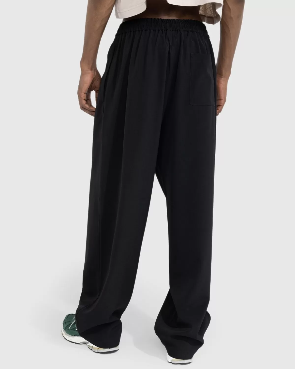 De Relaxed Fit Trouser, Een Comfortabele Broekstijl, Is Gemaakt Van Een Wolmix En Komt Dit Seizoen Uit In Een Veelzijdige Zwarte Kleurstelling. Een Elastische Taille Verhoogt Het Algehele Comfort, Met Een Intern Trekkoord Waarmee Je De Pasvorm Kunt Aanpassen. Het Paar Is Uitgerust Met Steekzakken Aan De Zijkant En Een Opgestikte Zak Aan De Achterkant Voor Extra Functionaliteit.