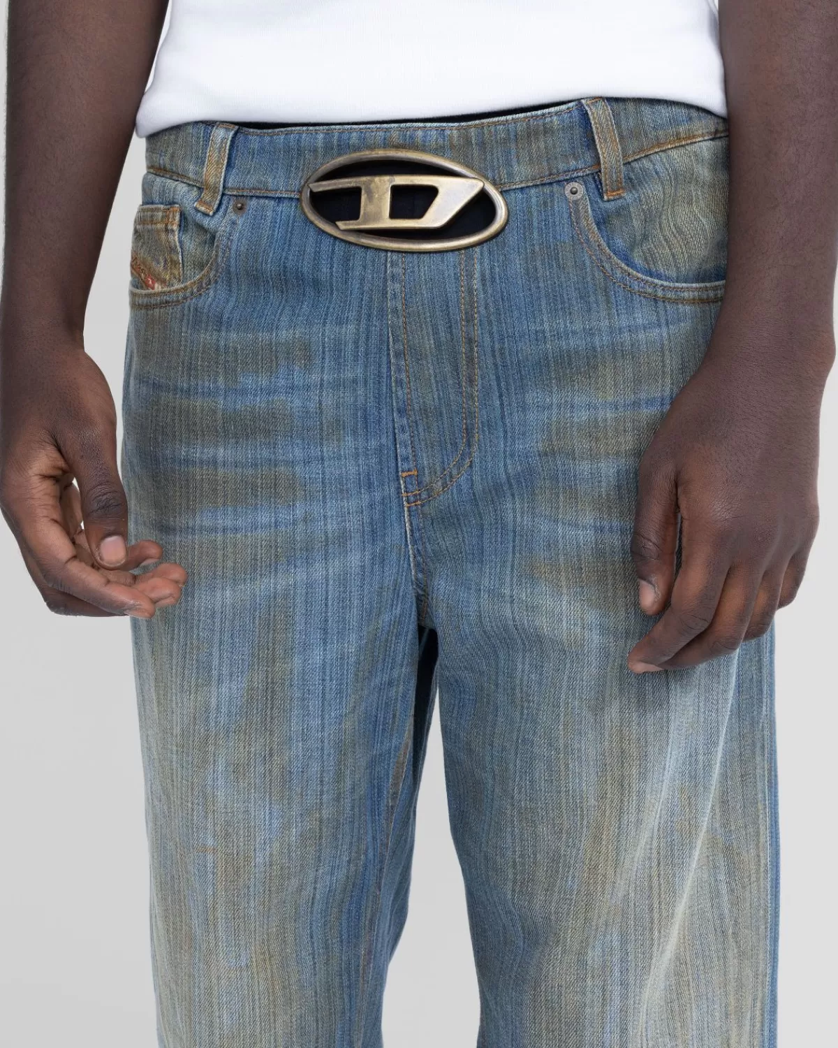 Dit Diesel-Denim Is Uitgerust Met Een Metalen Ovale D-Gesp Die Uiteindelijk De Stijl Bepaalt. De Jeans Heeft Een Pasvorm…
