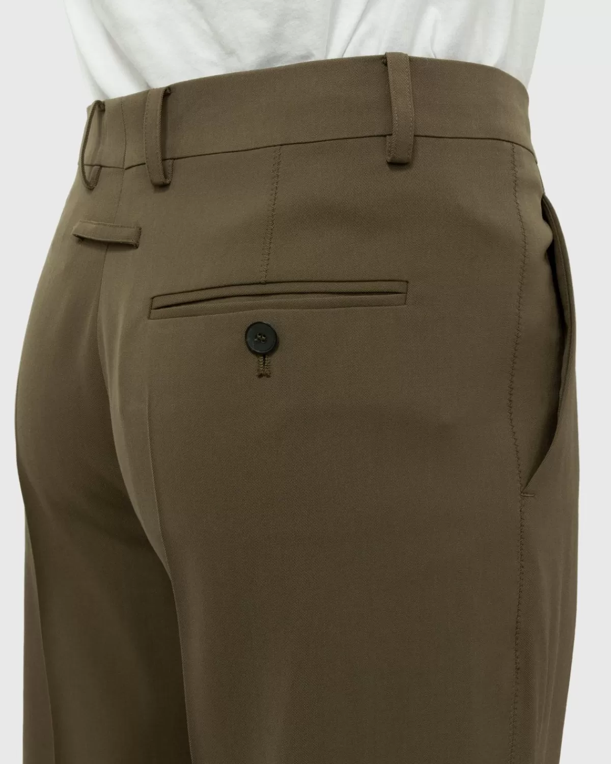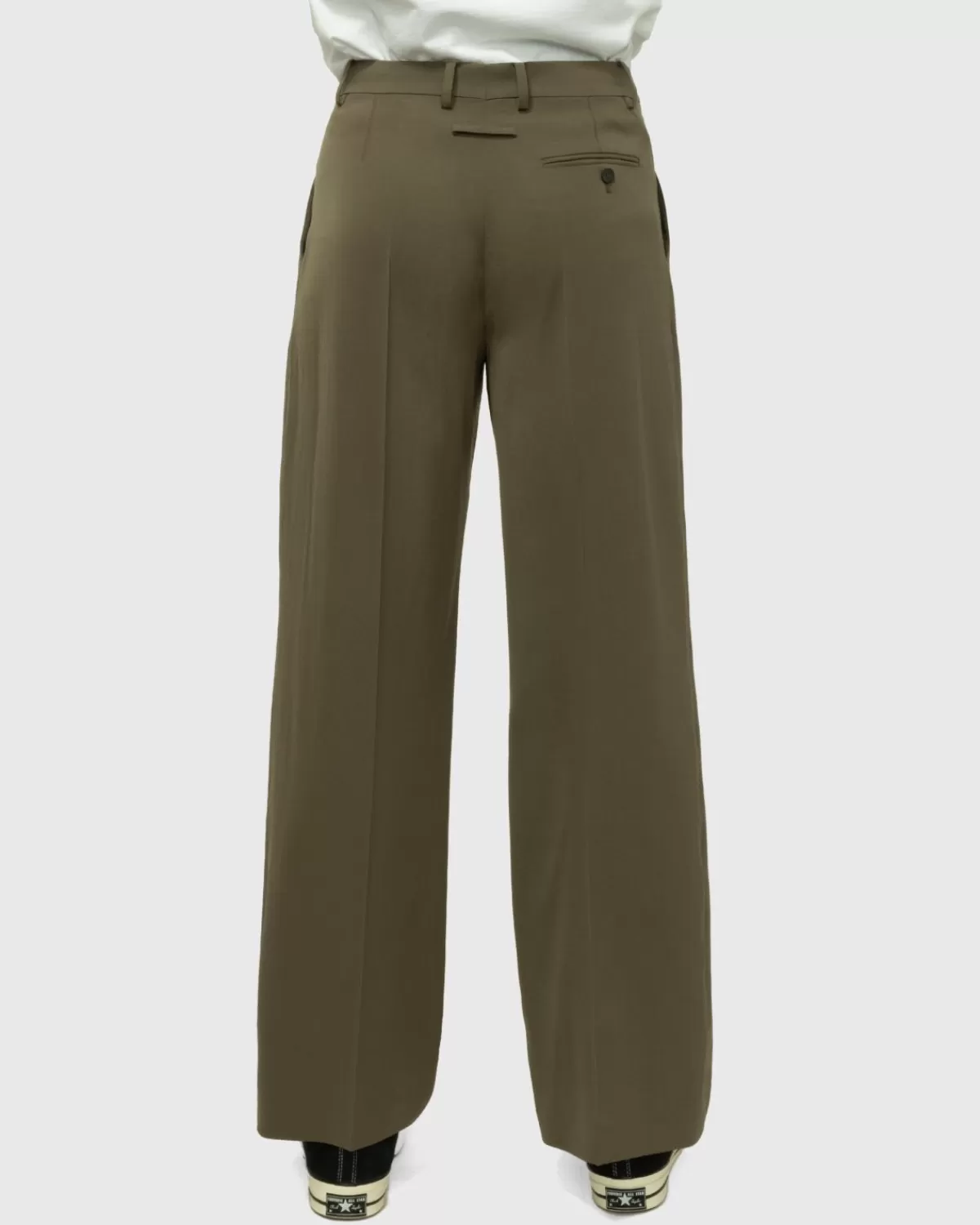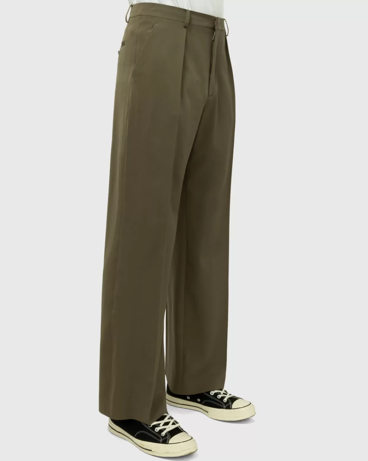 Deze Pantalon Van Jean Paul Gaultier Is Geproduceerd Van Een Zachte Wolmix En Heeft Een Rechte Pasvorm Met Wijde Pijpen Voor Een Meer Onderscheidende Look En Algeheel Draagcomfort. De Geplooide Stijl Komt In Een Neutrale Kaki Kleurstelling Voor Makkelijk Matchen, Gedetailleerd Met Schuine Voorzakken En Een Pakzak Met Enkele Knoop.
