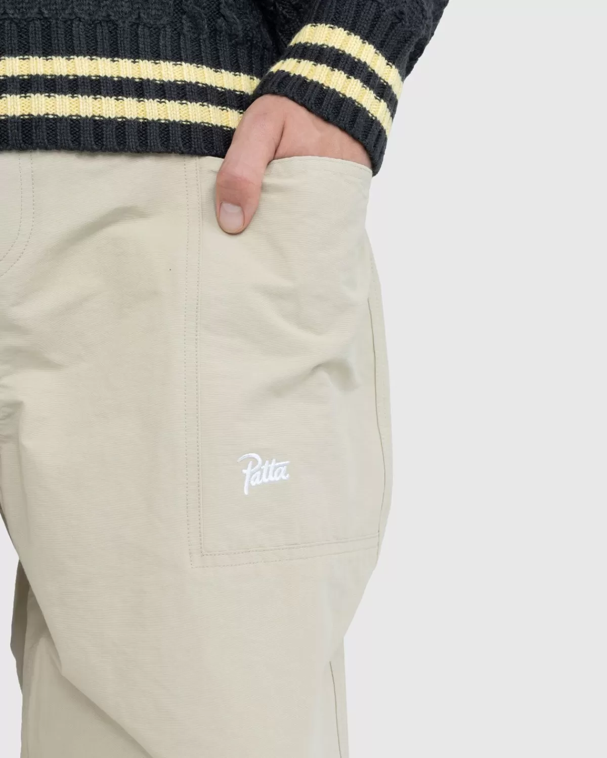 Zoals De Naam Al Doet Vermoeden, Wordt Patta’S Belted Tactical Chino Gekenmerkt Door Een Geïntegreerde Riem Waarmee Je De Pasvorm Kunt Bepalen. Het Paar Met Rechte Pijpen Is Gemaakt Van Een Technische Polyester-Nylonmix En Heeft Een Zak Met Ritssluiting En Een Steekzak Op Elke Pijp, Met Ook Zakken Aan De Achterkant. Het Iconische Logo Van Het Merk Is Op De Voorkant Van Het Linkerbeen Verwerkt Om Het Silhouet Minimaal Te Markeren.