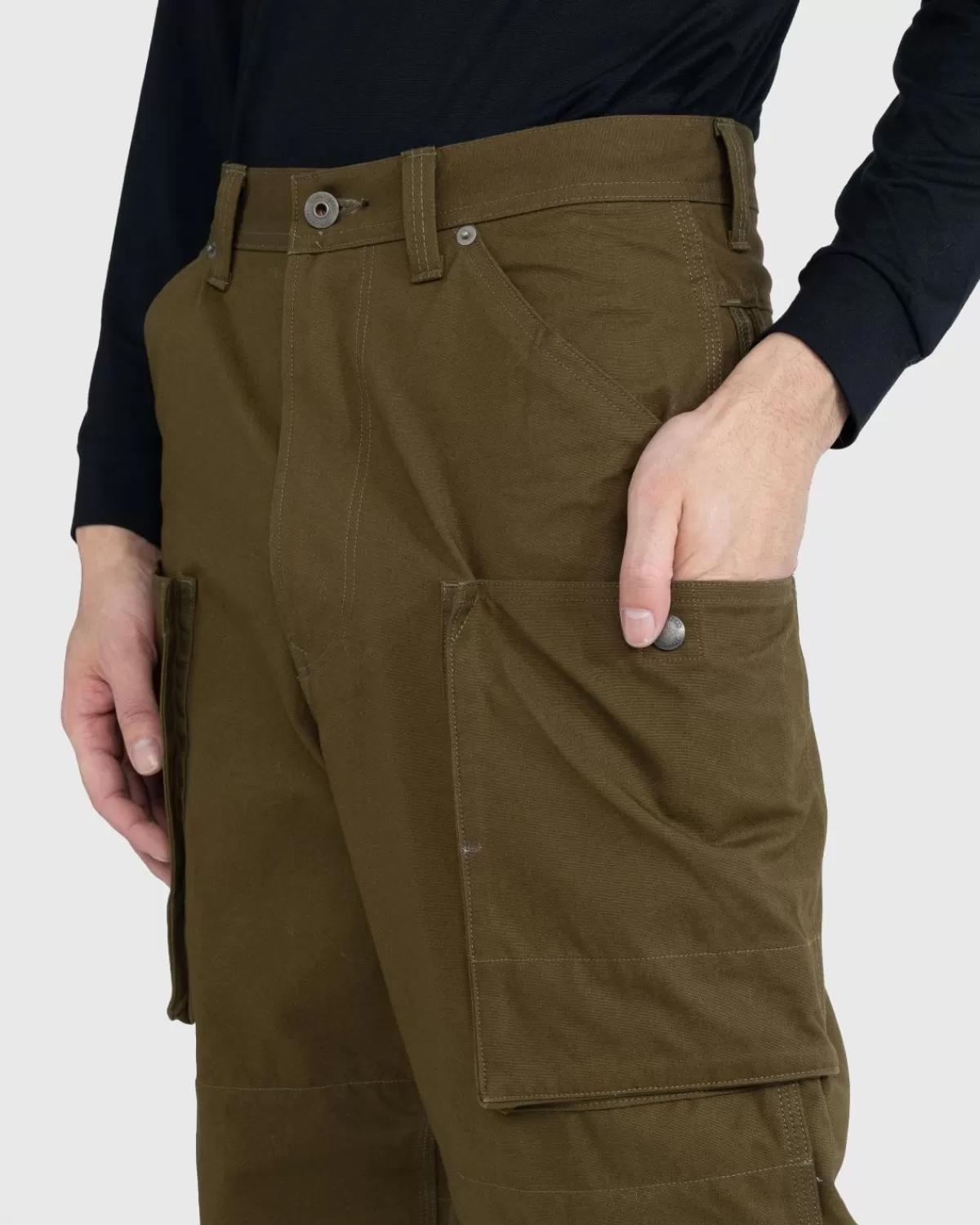 De Takibi Pant Is Een Op Werkkleding Geïnspireerde Stijl Gemaakt Van Canvasstof Die Is Behandeld Met Kanecaron, Een Vlamvertragend Acryl. Het Paar Komt In Een Must-Have Olijfgroene Kleurstelling Die Bij Vrijwel Alles Past, Uitgevoerd In Een Losse Pasvorm Met Rechte Pijpen En De Zoom Die Tot Onder De Enkel Reikt. Traditionele Ontwerpdetails Zijn Onder Meer Een Ritssluiting En Knoopsluiting, Evenals Riemlussen In De Taille, Terwijl De Broek Is Uitgerust Met Een Reeks Zakken Aan De Voor- En Achterkant En Grote Dijzakken, Waardoor Je Voldoende Ruimte Hebt Voor Je Dagelijkse Benodigdheden.