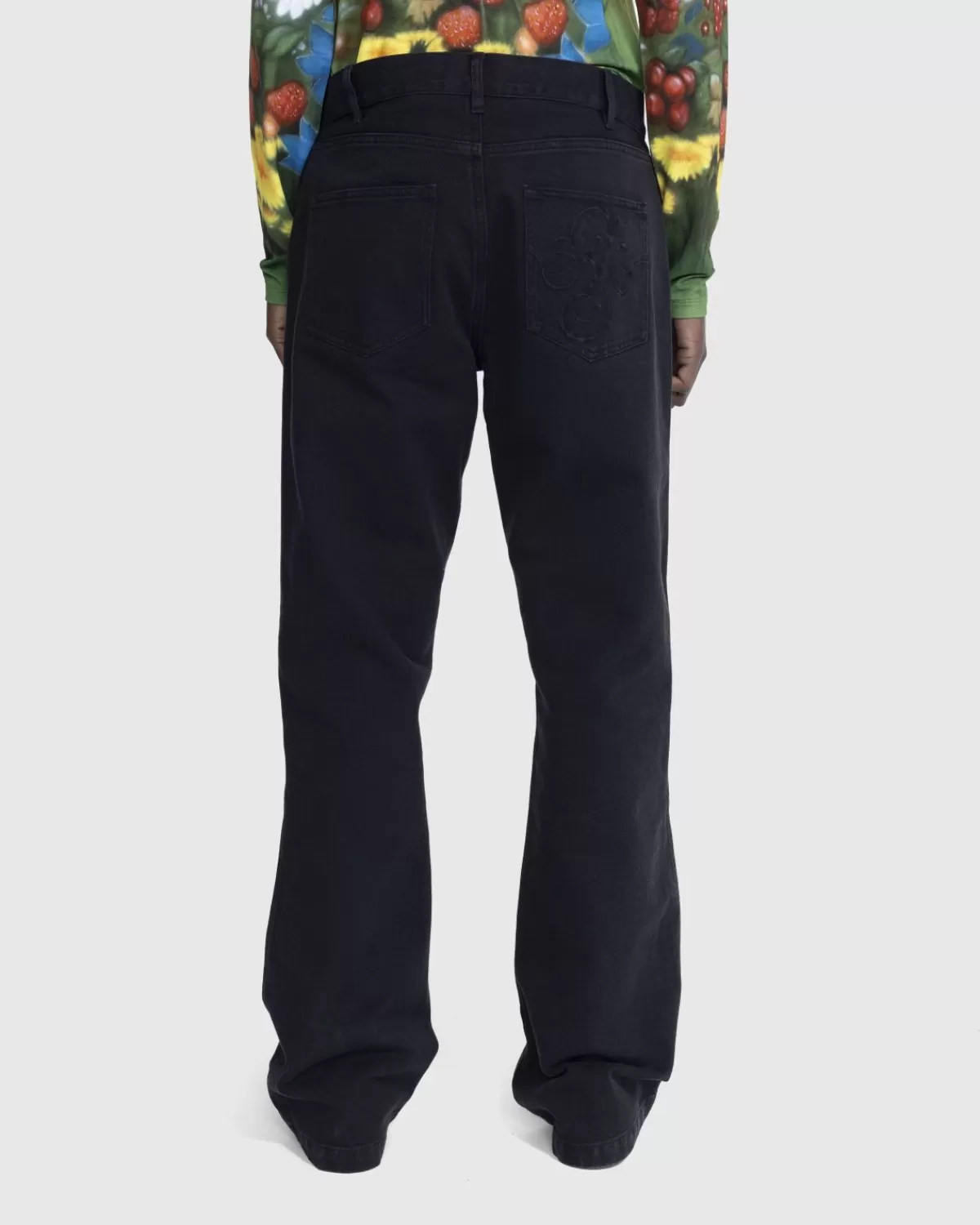 Stockholm Surfboard Club Zorgt Voor Een Throwback-Look Met De Flared Cotton Twill-Broek. Het Paar Is Vervaardigd Uit Biologisch Katoen, Is Kledingstuk Geverfd En Heeft Een Normale Pasvorm, Uiteraard Met Uitlopende Pijpen. Het Model Heeft Een Knoopsluiting, Riemlussen In De Taille En Voor- En Achterzakken, Met Ingewikkeld Borduurwerk Verwerkt Op Een Van De Achterzakken.