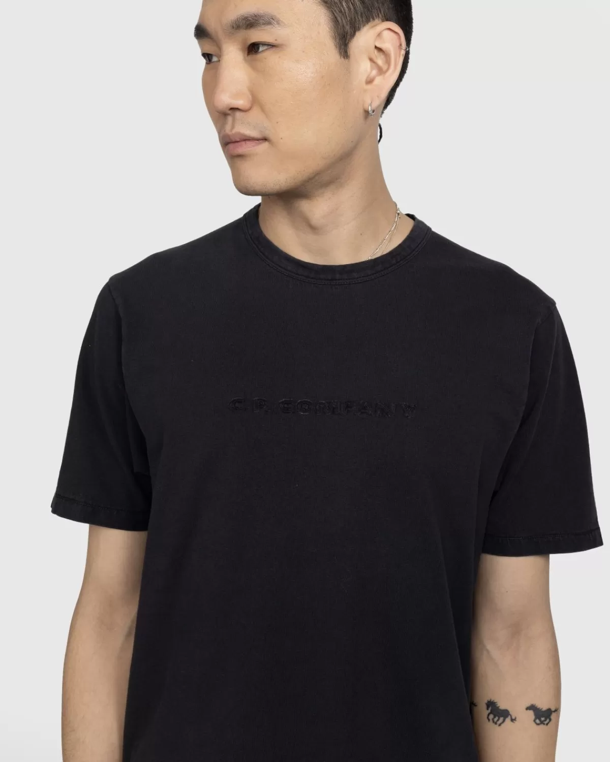 Het Logo T-Shirt, Een Basisstijl Van Cp Company, Is Gemaakt Van Een Fijne 1020 Katoenen Jersey Voor Een Zachte En Ademende Pasvorm En Oud Geverfd Om Meer Chromatische Diepte En Intensiteit In Het Afgewerkte Stuk Te Creëren. Het Heeft Een Traditionele Ronde Hals En Is Voorzien Van Een Klein Logo Dat Aan De Voorkant En In Het Midden Naar Voren Komt.