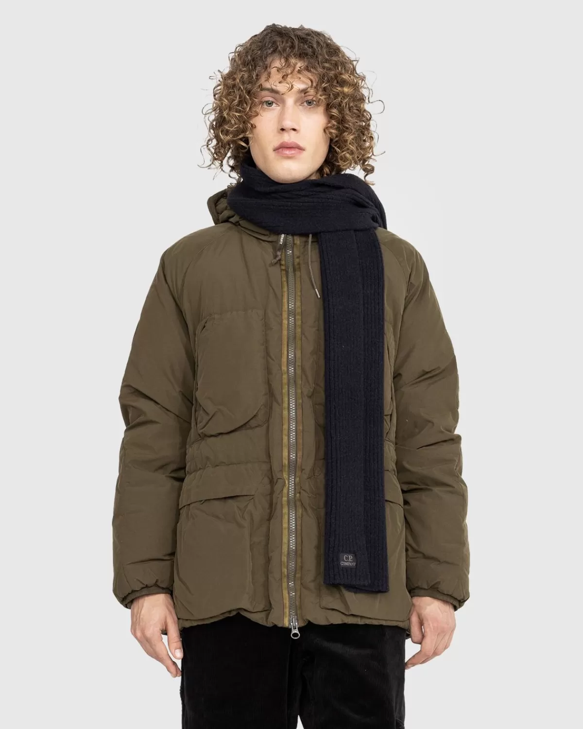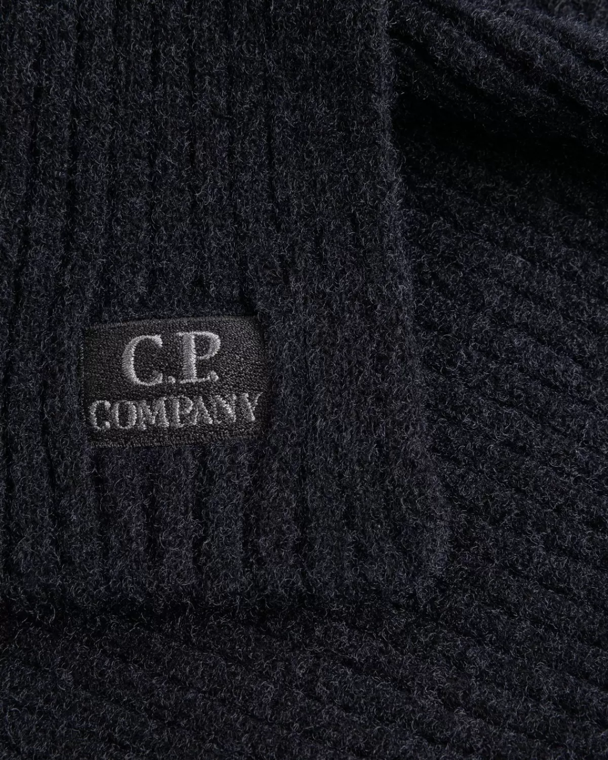 Deze Cp Company-Sjaal Is Onmisbaar Bij Koud Weer En Is Ribgebreid Van Een Zachte Nylon-Wolmixstof. Het Is Een Klassieke Wikkelstijl, Verfraaid Met Een Kleine Logopatch Die Aan De Onderkant Van Het Silhouet Is Gestikt.
