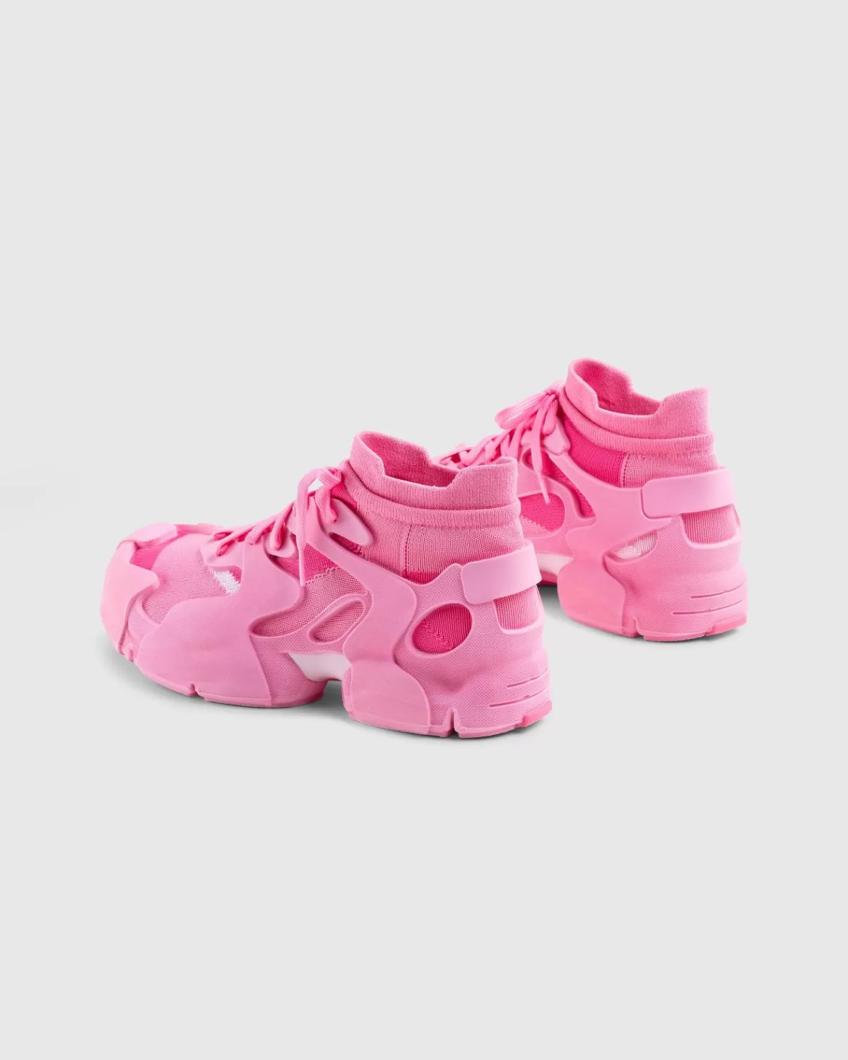 De Tossu Is Een Futuristische Sneaker Van Camperlab, Eentje Die Volledig Recyclebaar Is. Het Silhouet Is Gemaakt Zonder Stiksels Of Lijm En Heeft Een Buitenste Kooi Die Een 3D-Gebreide, Waterafstotende Sok Omhult Die Is Gemaakt Van Gerecycled Pet. Het Buitenste Gedeelte Zorgt Voor Structurele Stabiliteit In Het Ontwerp, Terwijl De Binnenste Laars Een Sokachtige Pasvorm Creëert. De Sneaker Is Vrij Van Drukke Exterieurmerken Om Een Strakkere Algehele Look Te Creëren.