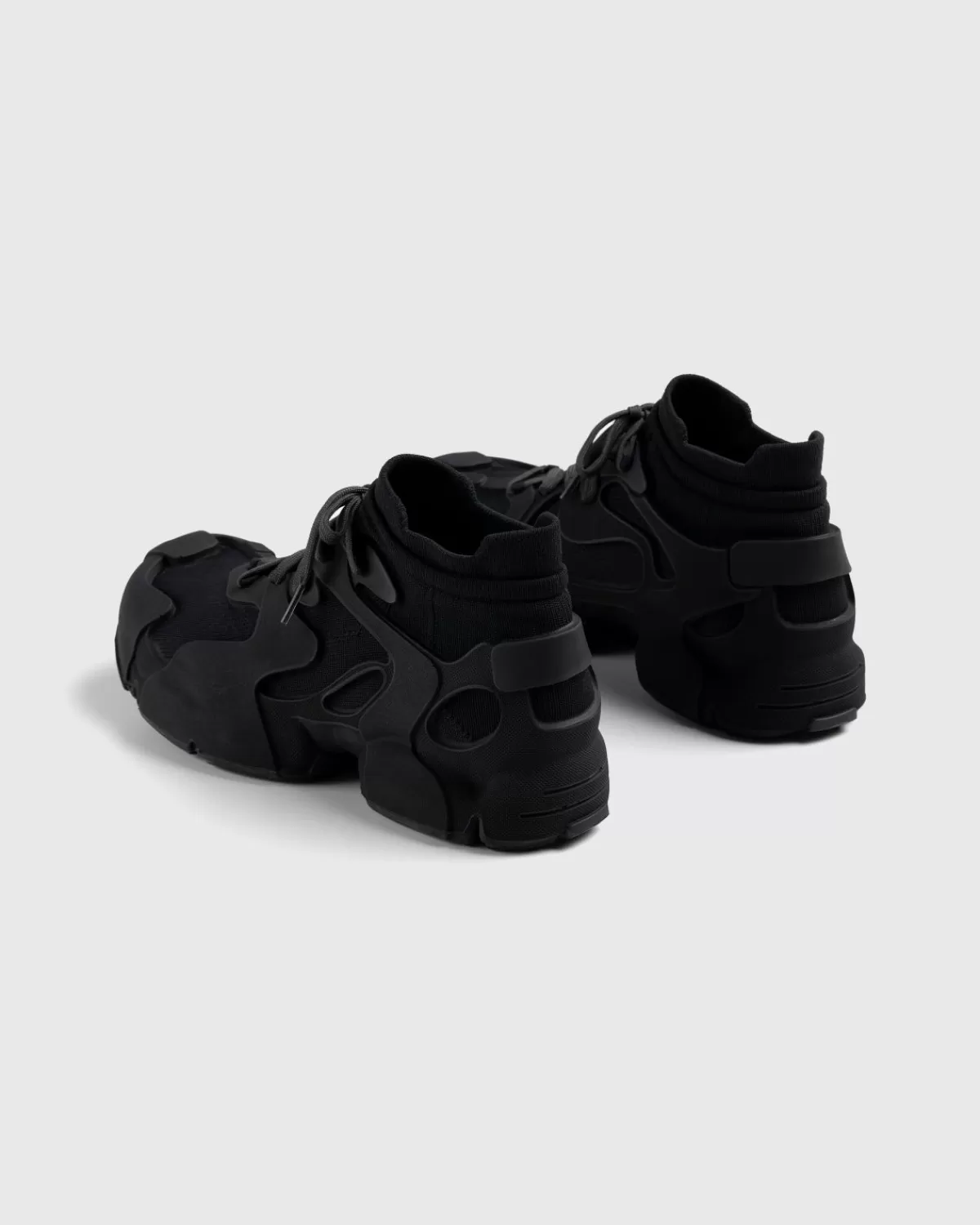 De Tossu Is Een Futuristische Sneaker Van Camperlab, Eentje Die Volledig Recyclebaar Is. Het Silhouet Is Gemaakt Zonder Stiksels Of Lijm En Heeft Een Buitenste Kooi Die Een 3D-Gebreide, Waterafstotende Sok Omhult Die Is Gemaakt Van Gerecycled Pet. Het Buitenste Gedeelte Zorgt Voor Structurele Stabiliteit In Het Ontwerp, Terwijl De Binnenste Laars Een Sokachtige Pasvorm Creëert. De Sneaker Is Vrij Van Drukke Exterieurmerken Om Een Strakkere Algehele Look Te Creëren.