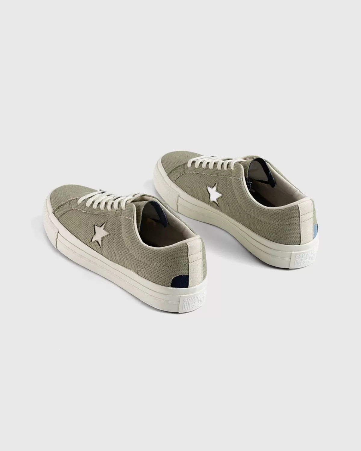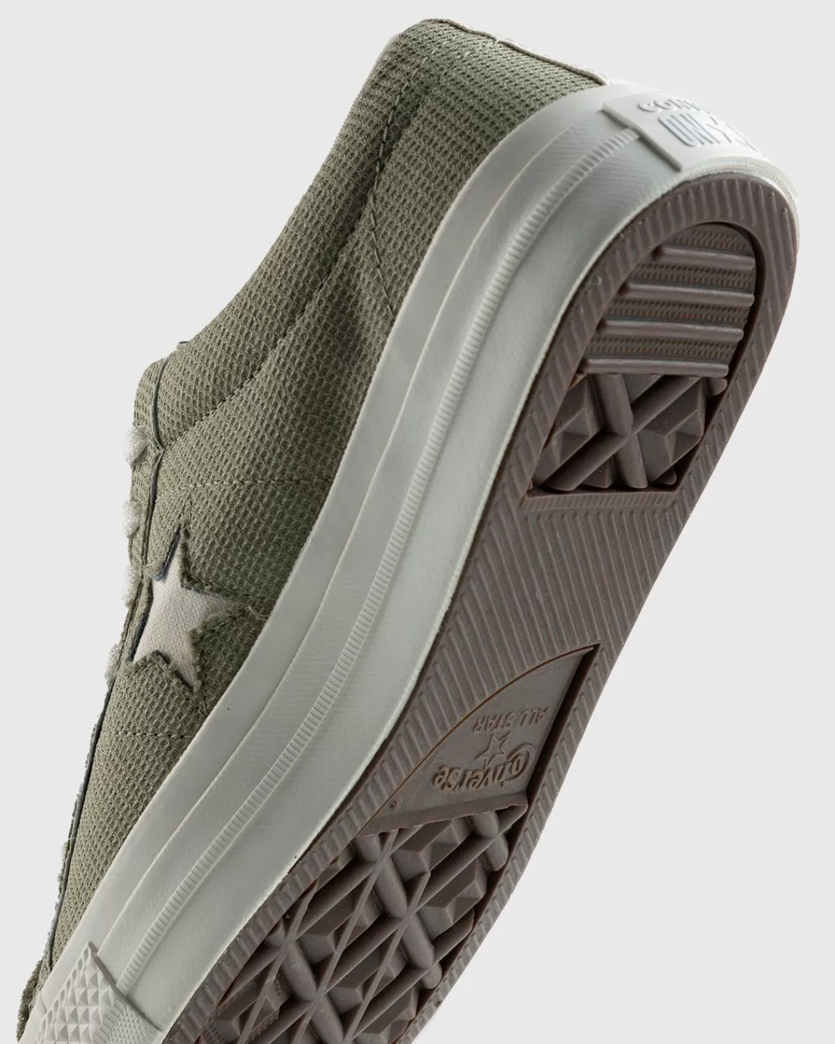 Een Iconisch Converse-Silhouet, De One Star, Werd Geïntroduceerd In 1974. Door De Jaren Heen Is De Klassieke Low-Top Uitgebracht In Een Hele Reeks Kleurstellingen En Materiaaluitvoeringen, Omdat We Nu Een Modernere Kijk Op De Geliefde Sneaker Hebben. Dit Specifieke Paar Heeft Een Bovenwerk Van Kakigroen Katoenen Canvas Met Ronde Indigo-Denimaccenten Op De Hiel. De Kenmerkende Ster Is Uiteraard Aan Elke Kant Aanwezig In De Vorm Van Een Precieze Uitsparing. Deze Neutrale Kleurstelling Van De One Star Zorgt Ervoor Dat Je Hem Gemakkelijk Kunt Matchen, Omdat Je Hem Zowel Chic Als Casual Kunt Dragen Voor Verschillende Gelegenheden.