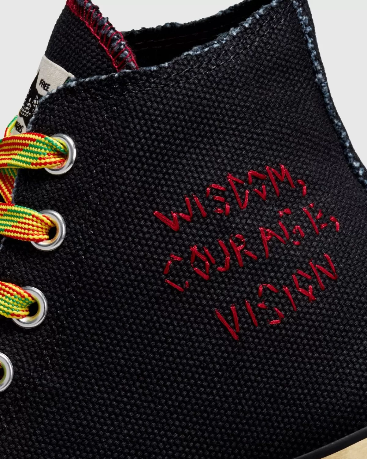 De Barriers Chuck 70, Een Gedurfde En Krachtige Uitvoering Van Een Converse-Icoon, Combineert Streetstyle En Versterkt Verhalen Over Het Ongehoorde. Deze Gezamenlijke Release Is Geïnspireerd Op The North Star, Een 19E-Eeuwse Anti-Slavernijkrant Opgericht Door Frederick Douglass. De Limited Edition Chuck 70 Is Versierd Met Geborduurde Tekst, Een Aangepaste Sterafbeelding En Co-Branded Details, Die Het Verhaal Van Twee Toonaangevende Merken Verenigen. Naast De Unieke Iconografie Is De Sneaker Verder Verfraaid Met Versleten Randen En Geborduurde Oogjes, Terwijl Hij Compleet Wordt Geleverd Met Een Drietal Polykantopties En Een Op Kaurischelpen Geïnspireerd Kantjuweel.