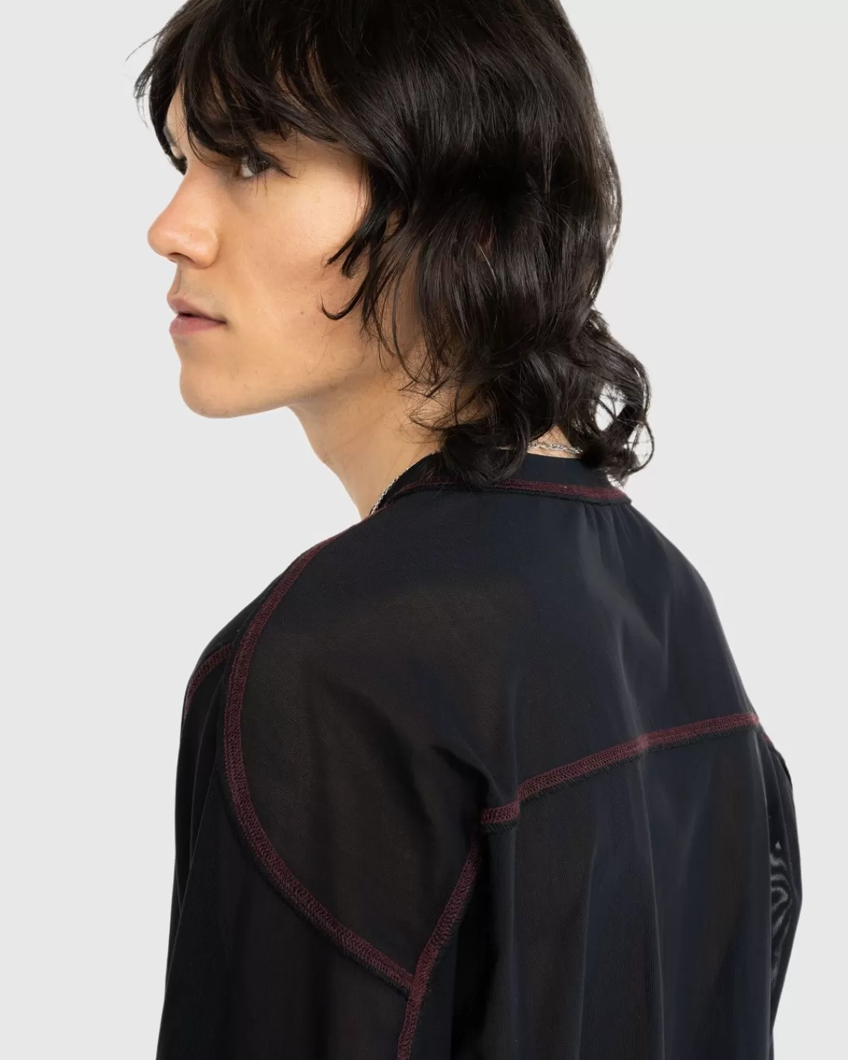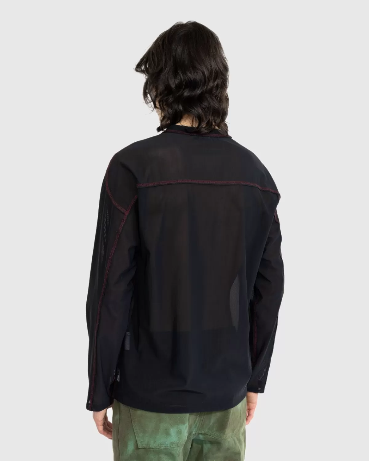 De Boxed Mesh Pullover Van Affix Is Een Doorzichtig Model Voor Warm Weer, Gemaakt Van Een Lichtgewicht Mix Van Nylon En Elastaan. Dit Seizoen Komt Hij In Een Onopvallende Zwarte Kleurstelling Met Omgekeerde Flatlock-Contrastnaden, Een Ronde Hals En Lange Mouwen.