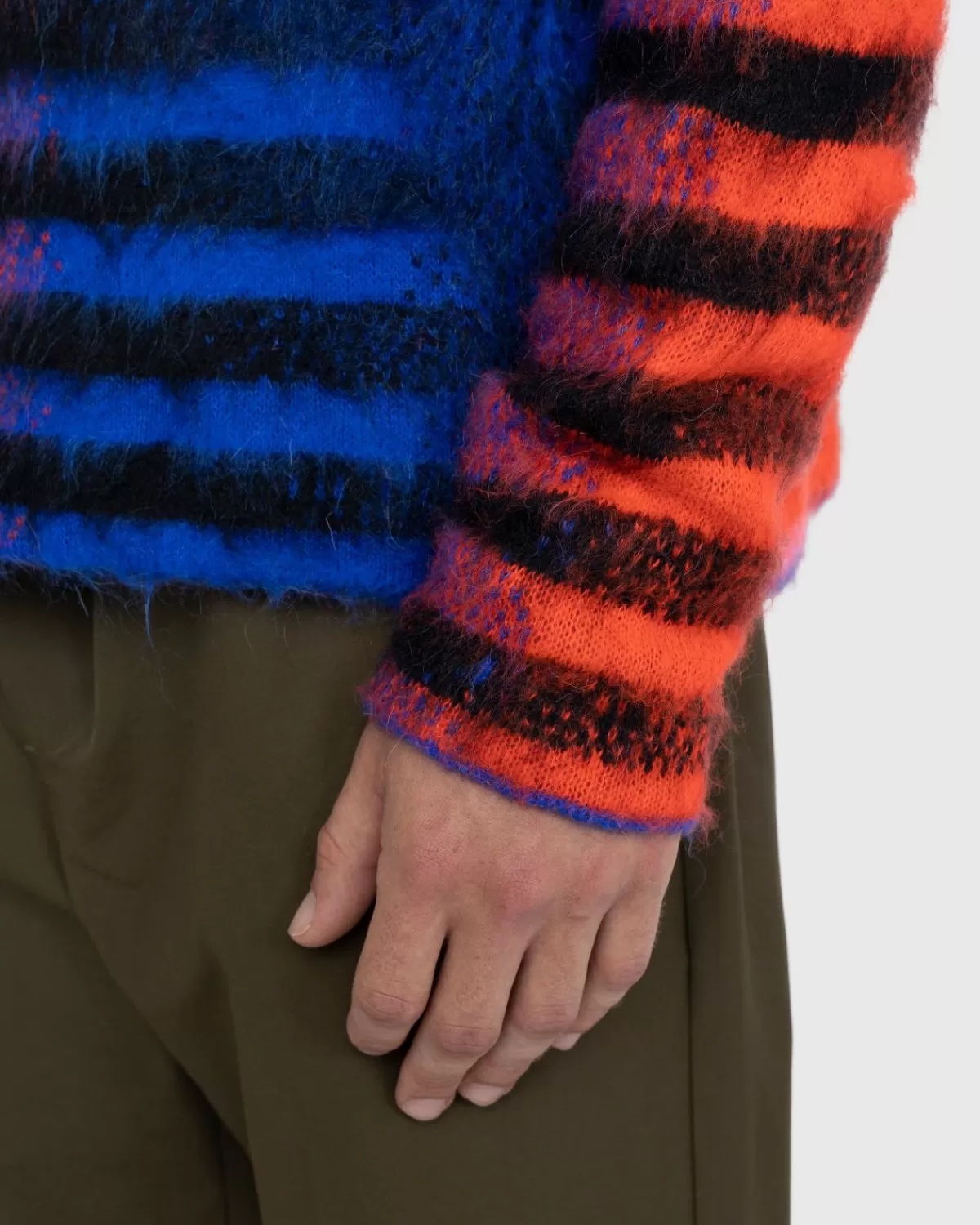 De Luxe Breikleding Van Agr Wordt Gekenmerkt Door Opvallende Kleuren En Hoogwaardige Materialen. Stijlen Zoals De Gestreepte Mohair Crewneck Putten Uit De Londense Roots Van Het Merk En De Diverse Cultuur Van De Stad, Terwijl Ze Traditionele Gebreide Thema’S Uitdagen. Deze Gezellige Trui Is Gemaakt Van Een Geborsteld Gebreide Mohair- En Acrylmix En Heeft Een Opvallend Jacquard Gestreept Patroon Dat Een Dierlijk Tintje Aan Je Garderobe Geeft. Het Kledingstuk Heeft Een Iets Oversized Pasvorm Voor Een Comfortabelere En Relaxte Look, En Is Voorzien Van Geribde Boorden Bij De Hals.