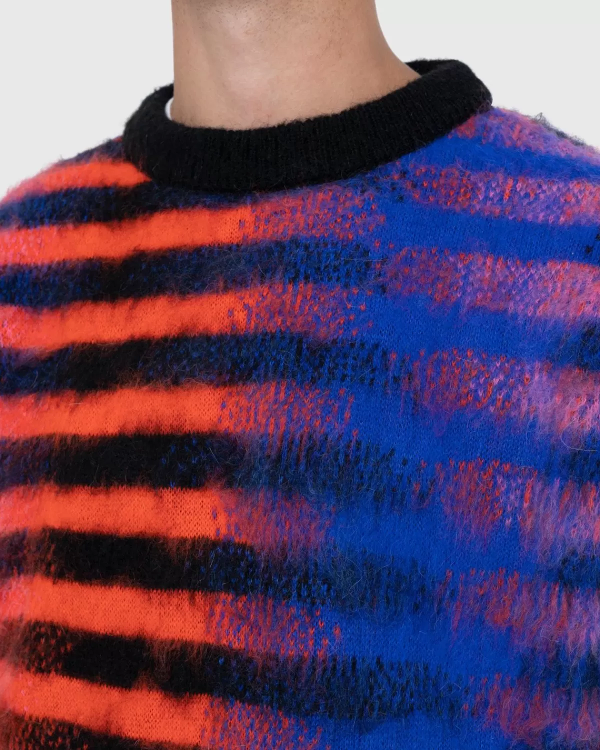 Gebreide Kleding^AGR Gestreepte Mohair Trui Met Ronde Hals Rood/Blauw