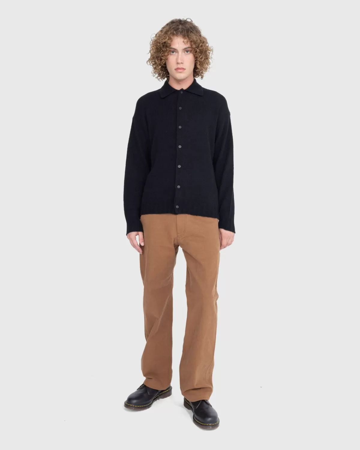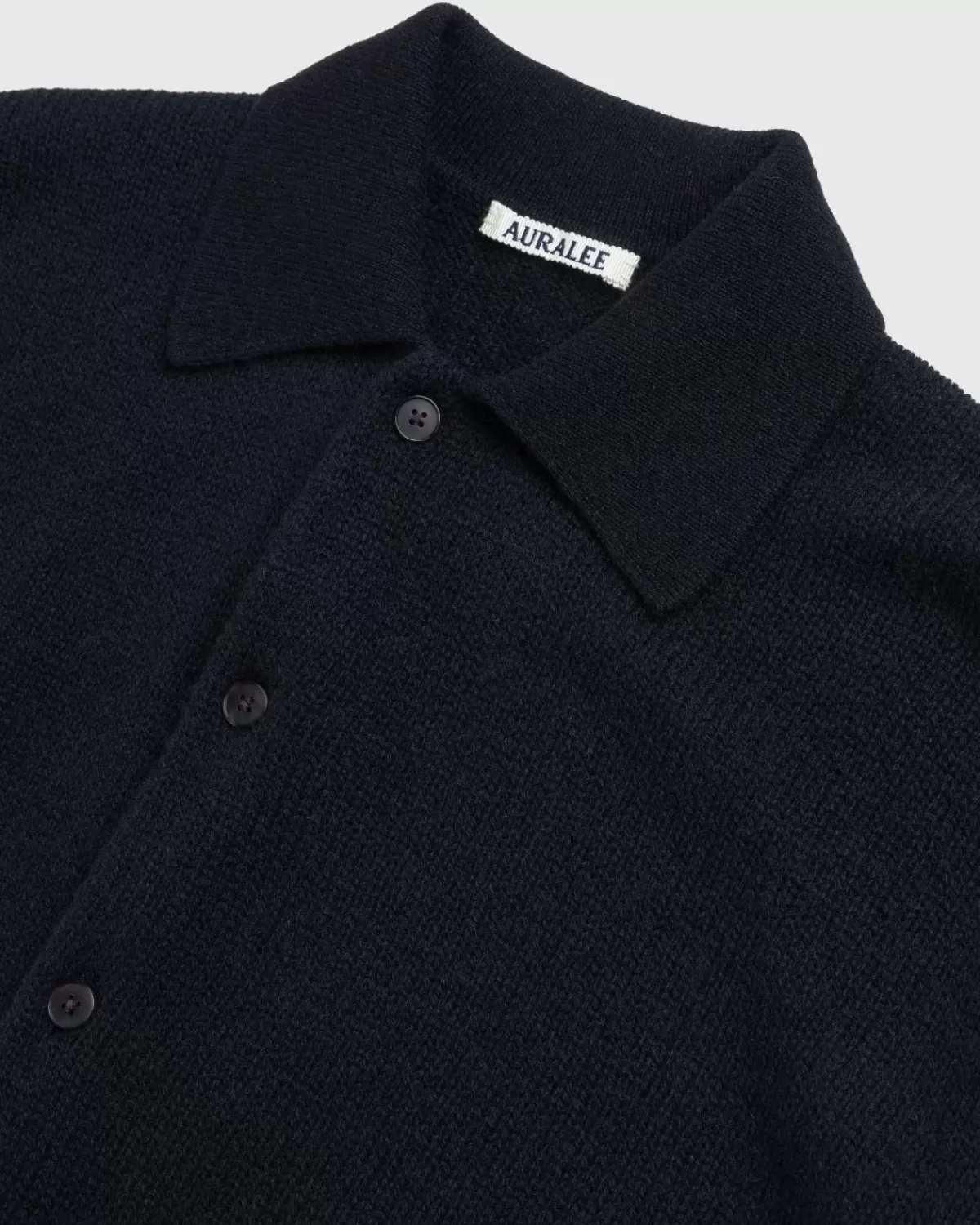 Dit Auralee Vest Is Gemaakt Van Robuuste Shetlandwol En Kasjmier, Gedraaid En Licht Gebreid In Een Lage Dikte. Het Kledingstuk Voelt Licht En Zacht Aan En Combineert De Veerkracht Van Shetland Met De Soepele Textuur Van Kasjmier. Ontwerpdetails Zijn Onder Meer Een Polokraag, Een Knoopsluiting Aan De Voorkant En Geribde Boorden Aan De Manchetten En Zoom.