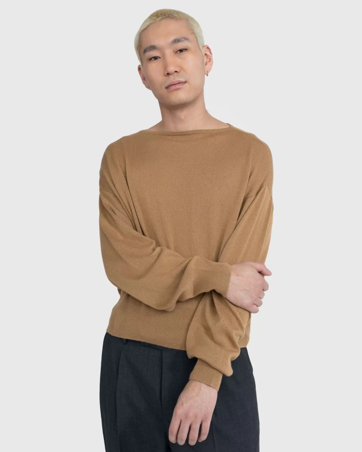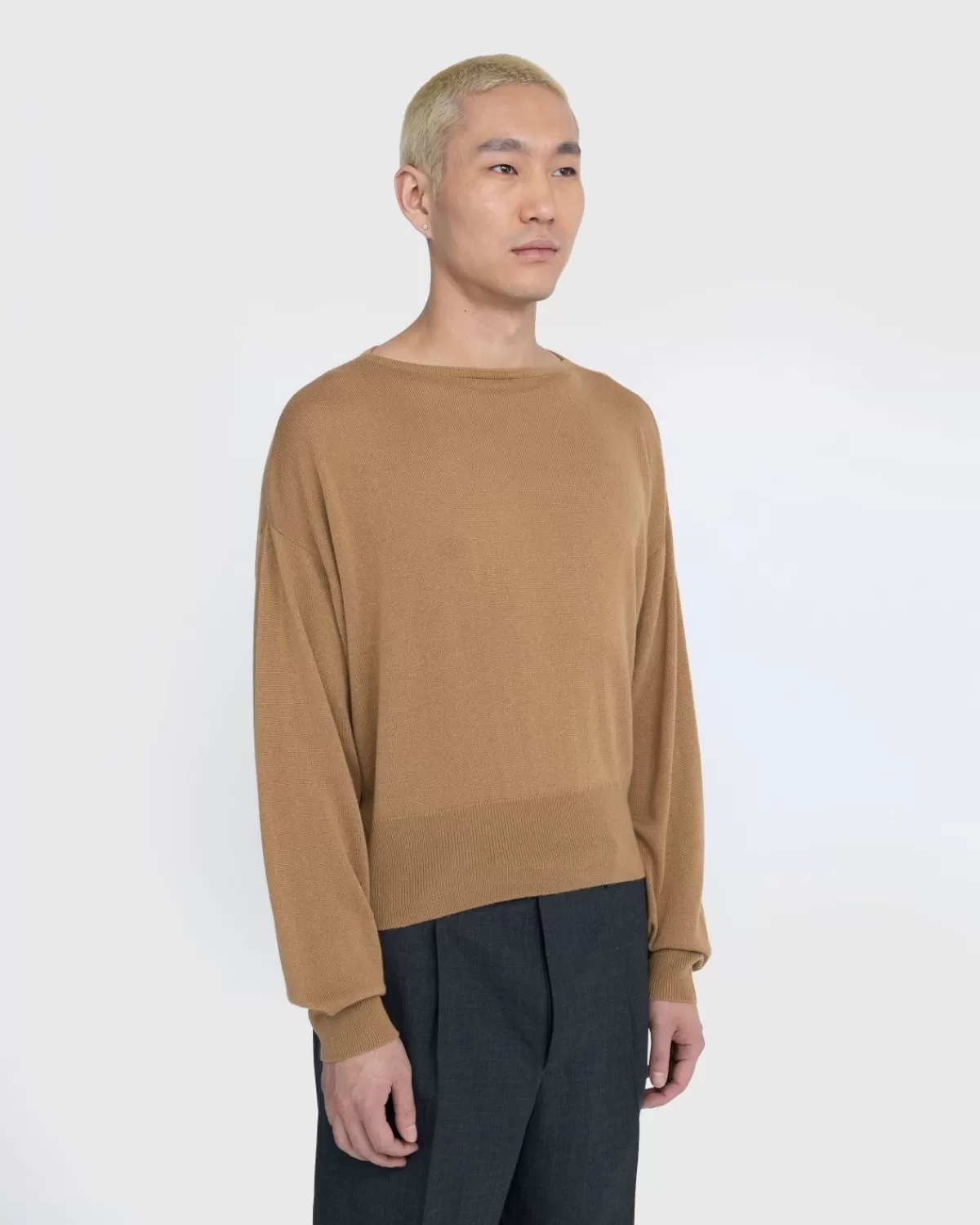 Dit Auralee-Breisel Is Gemaakt Van Wasbare Zijde En Kasjmiergaren Dat Wordt Gekenmerkt Door De Gladde Textuur, De Glans Van De Kasjmierzijde En De Lichtheid Van De Grondstof. De Knusse Trui Heeft Een Boothals, Is Gedetailleerd Met Geribde Boorden Aan De Manchetten En Zoom En Heeft Een Ontspannen, Boxy-Pasvorm Met Verlengde Mouwen.