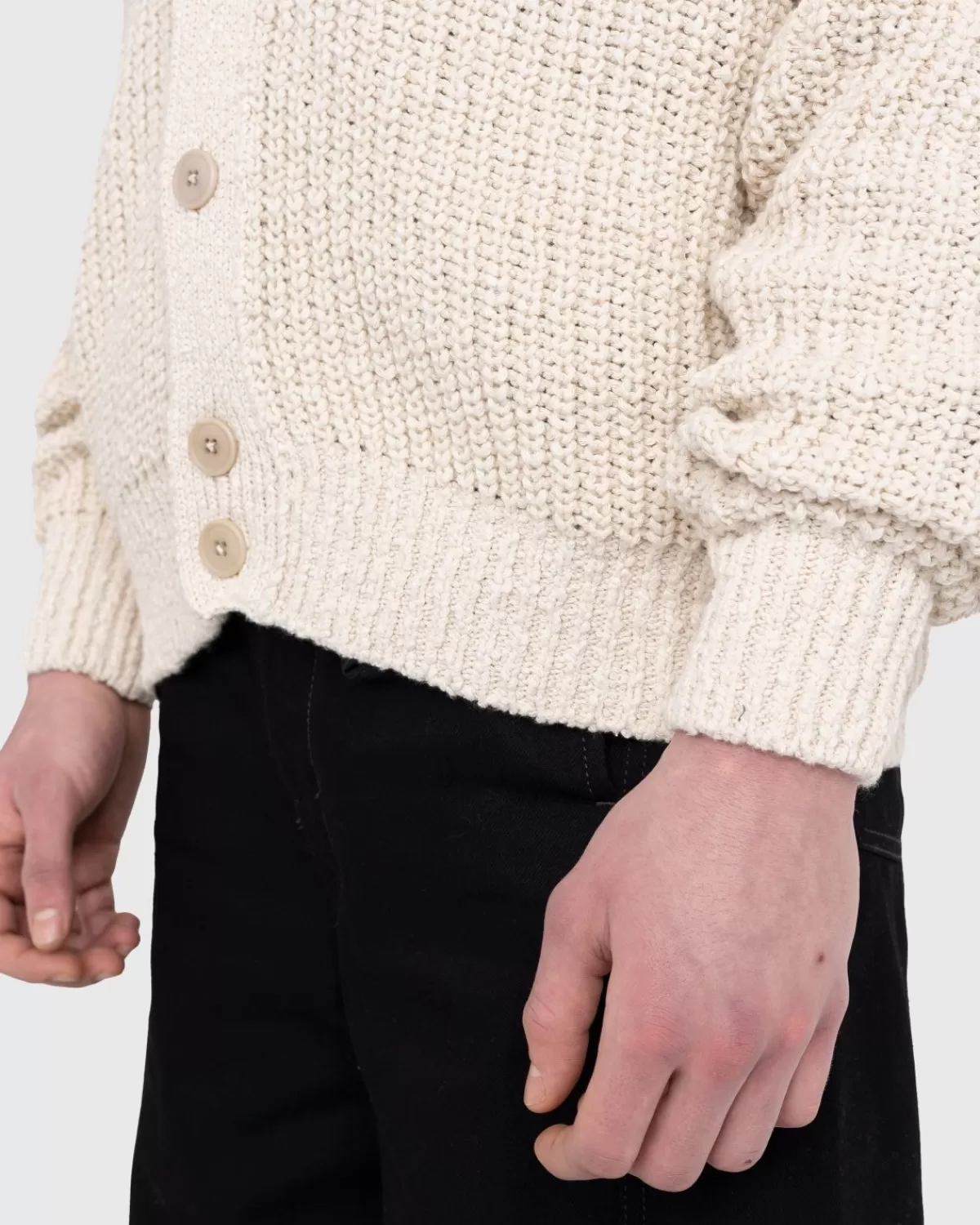 De Chunky Cardigan Is Een Lemaire-Klassieker, Gebreid Van Een Zachte Katoenen Stof Met Een Dicht Maar Lichtgewicht Gevoel En Een Rustieke Uitstraling. Het Heeft Een Rechte Pasvorm Met Ronde, Verlaagde Schouders En Een Diepe, Geribde Halslijn Die Doorloopt Tot Aan De Knoopsluiting. Deze Specifieke Versie Van Het Vest Komt In Een Neutrale Beige Kleurstelling, Zodat Je Hem Seizoen Na Seizoen Moeiteloos Kunt Matchen.