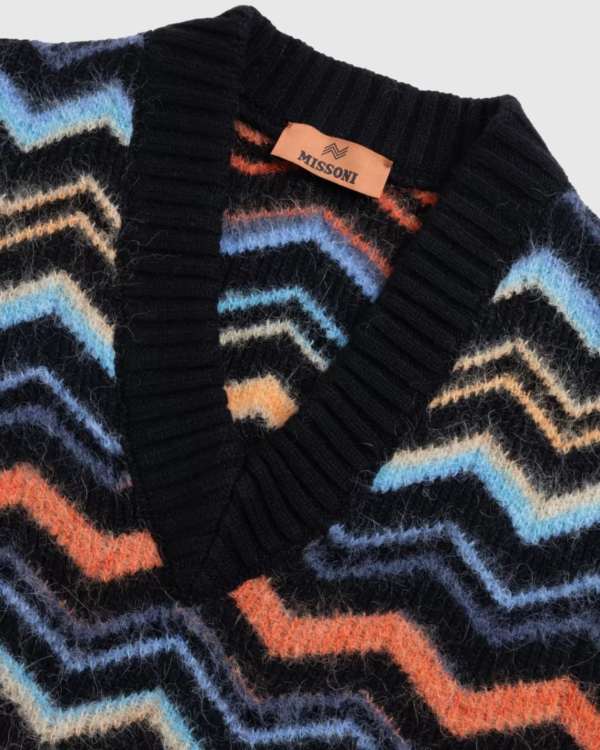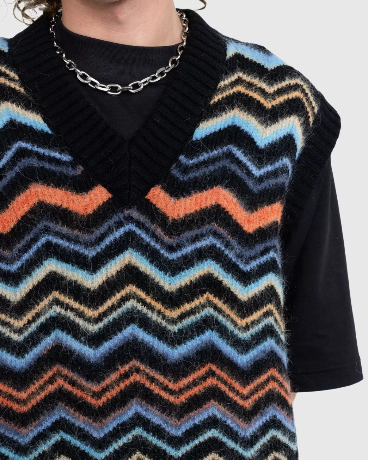 Gebreide Kleding^Missoni Zigzag Gebreid Vest Zwart/Oranje/Lichtblauw