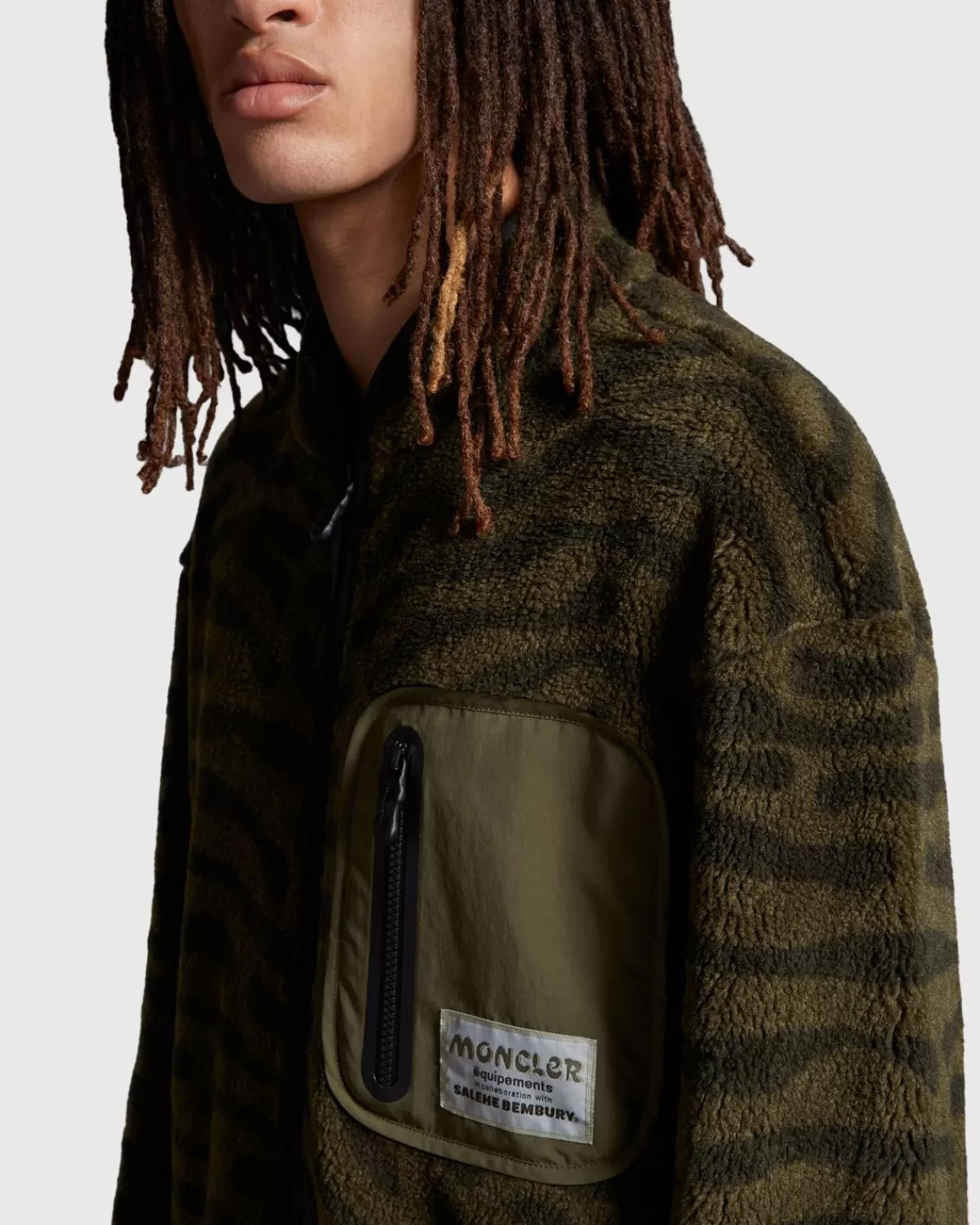 Geïnspireerd Door Hun Liefde Voor De Natuur, Hebben Moncler En Salehe Bembury Hun Krachten Gebundeld Om Een Collectie Te Creëren Waarin De Ideologie Van Bembury Doordrenkt Is Met Het Bergsporterfgoed Van Moncler. Het Pluche Sweatshirt Is Gemaakt Van Geweven Jacquardstof Met Een All-Over Patroon En Gedetailleerd Met Een Borstzak Met Rits, Een Klassieke Ritssluiting En Een Moncler X Salehe Bembury-Label Op De Zak.