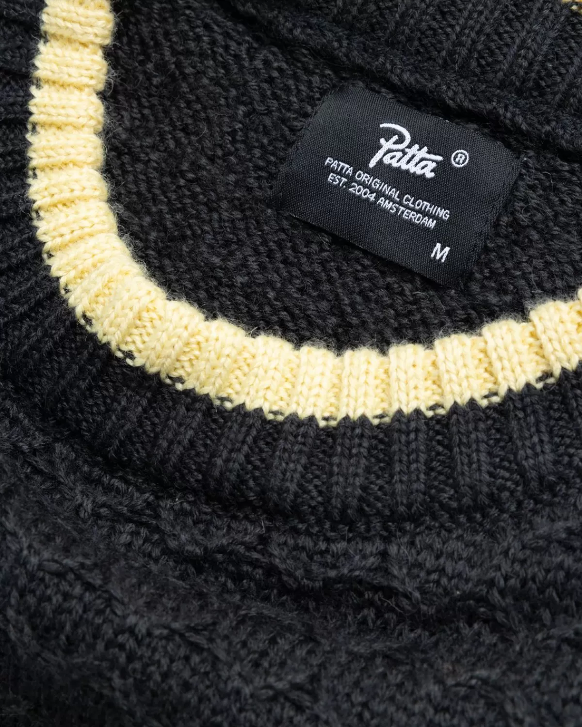 Dit Seizoen Komt Patta Door Met Een Essentiële Stijl Voor Koud Weer: De Loves You Kabelgebreide Trui. Zoals De Naam Al Zegt, Is Het Kledingstuk Voorzien Van Een Gebreide Kabel, Terwijl Het Gedetailleerd Is Met Geribde Boorden Aan De Ronde Hals, Manchetten En Zoom. Op De Voorkant Van De Trui Is Een Seizoensgebonden Team Patta-Logo Te Zien Om Het Kledingstuk Uiteindelijk Te Definiëren.