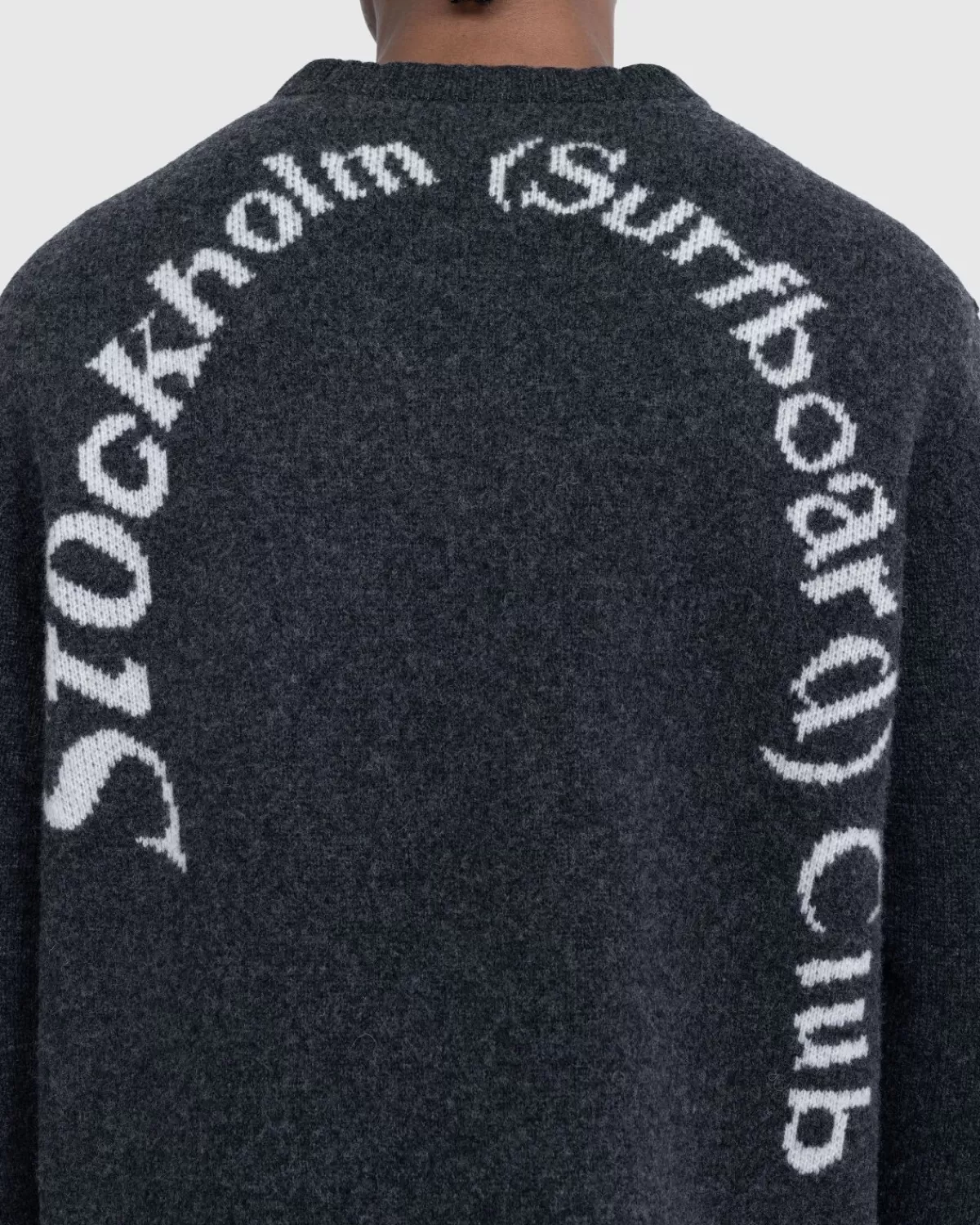Deze Comfortabele Trui Met Ronde Hals Van Stockholm Surfboard Club Komt In Een Veelzijdige Zwarte Kleurstelling Die Je Het Hele Jaar Door Kunt Dragen. De Top Is Gemaakt Van 100% Merinowol En Is Gedetailleerd Met Traditionele Ribgebreide Randen Aan De Ronde Hals, Manchetten En Zoom, En Verfraaid Met Een Speels Stockholm Surfboard Club-Logo Op De Achterkant.