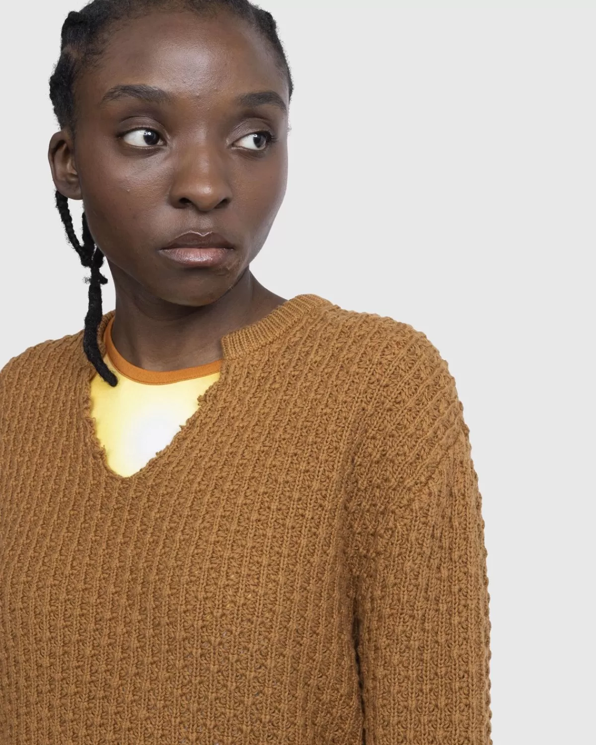 De V-Hals Trui Van Stockholm Surfboard Club Is Een Zeer Comfortabel Model, Vervaardigd Uit Een Los Katoenen Plooibreisel. Dit Multi-Seizoensstuk Wordt Aangeboden In Een Dieporanje Kleurstelling En Wordt Gekenmerkt Door Uitgesneden Details Bij De Kraag, Met Een Oversized Pasvorm Voor Extra Behaaglijkheid.