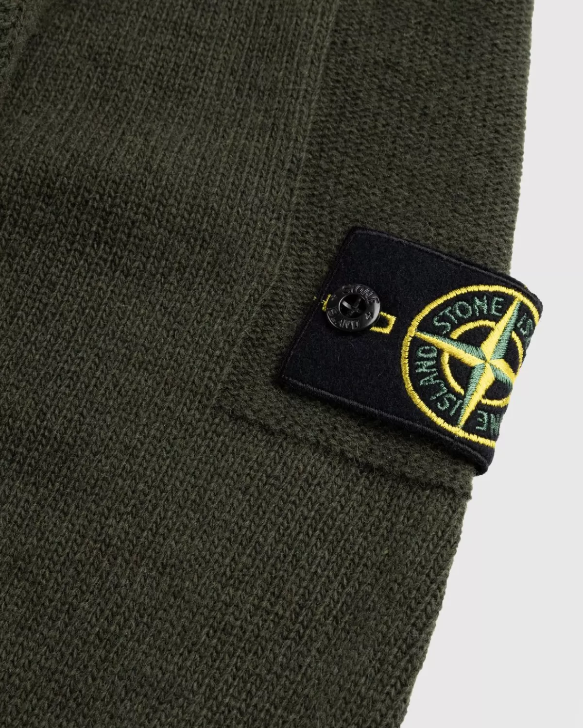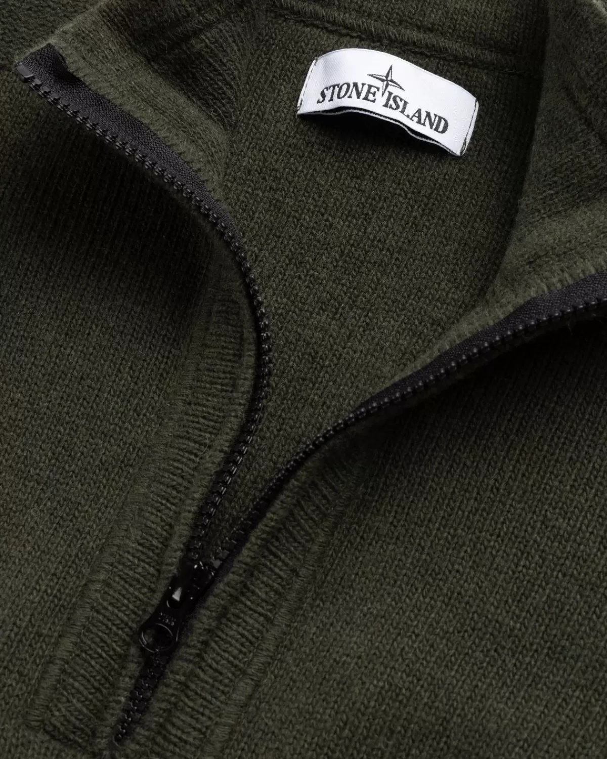 Deze Gezellige Stone Island-Ritssluiting Met Halve Rits Is Gebreid Van Lamswol, Deels In Tricotsteek, Deels In Omgekeerd…