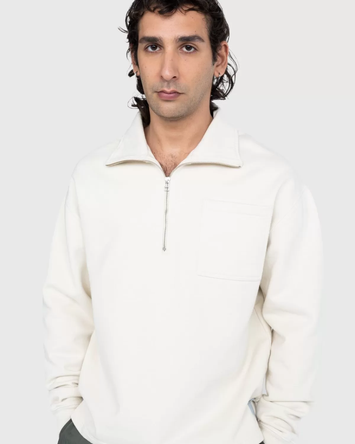 De Fleece Quarter Zip Is Gemaakt Van Zwaar Katoen En Wordt Aangeboden In Een Selectie Neutrale Kleuren. Het Kledingstuk Heeft Een Klassieke, Boxy-Pasvorm En Is Uitgerust Met Een Kwartdraadrits En Een Converteerbare Kraag Waarmee Je Kleine Wijzigingen In De Styling Kunt Aanbrengen. Extra Details Zijn Onder Meer Geribde Boorden En Een Linkerborstzak, Terwijl De Top Minimaal Is Voorzien Van Een Klein Highsnobiety-Vlaglabel.