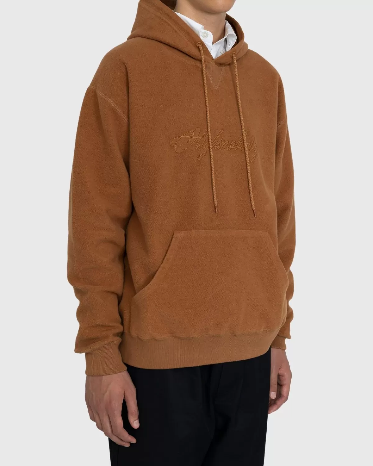 Highsnobiety Scriptlogo Omgekeerde Fleece Hoodie Bruin Cheap
