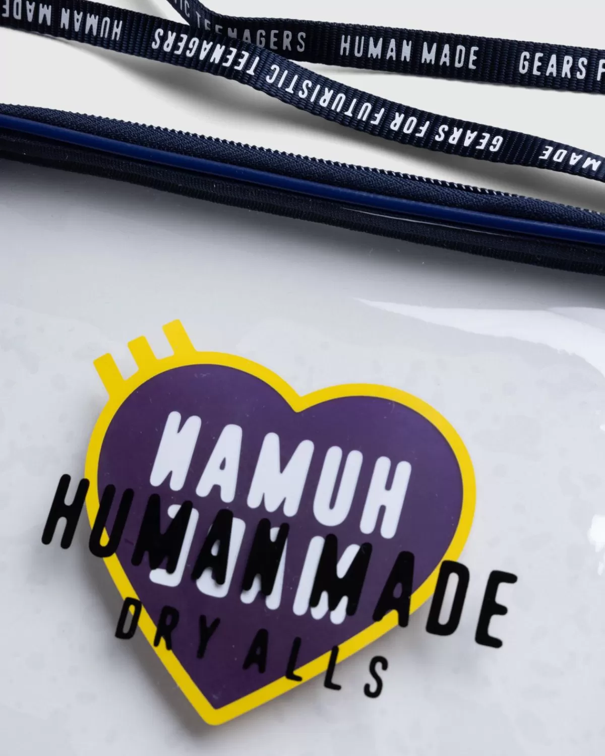 Het Pvc-Zakje Van Human Made Is Een Doorzichtige Bagage-Stijl Waarmee U De Inhoud Van Het Accessoire Kunt Zien. Het Is Uitgerust Met Een Dubbele Ritssluiting Aan De Bovenkant En Is Aan Beide Zijden Van Het Zakje Verfraaid Met Human Made-Iconografie. De Tas Wordt Geleverd Met Een Afneembare Nylon Riem Met Merklogo, Waarmee Je Hem Op Verschillende Manieren Kunt Dragen.