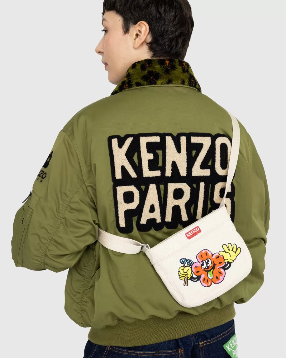 Deze Zeer Functionele Draagtas Biedt De Mogelijkheid Om Met De Hand, Over Je Schouder Of Als Crossbodytas Te Worden Gedragen En Wordt Geleverd Met Een Lange Riem En Twee Handvatten. Aan De Buitenkant Van De Tas Is Het ‘Boke Flower’-Motief Uit De Eerste Kenzo-Collectie Van Artistiek Directeur Nigo Opnieuw Vormgegeven Als Een Speels Stripfiguur. Ondertussen Geeft Een Afbeelding Aan De Andere Kant Aan Dat De Drager Van Deze Tas Officieel Een ‘Boke Boy’ Is.