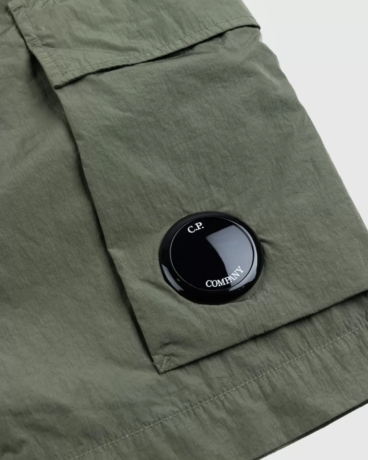 Deze Cp Company-Short Is Gemaakt Van Gerecycled Chrome-R, Een Geweven Multifilament-Nylon Dat Fungeert Als Een Barrière Tegen Water En Wind. De Stof Is Speciaal Ontwikkeld Voor Het Verven Van Kleding Om Lichtere En Levendigere Tinten Te Creëren. De Short Is Op Knielengte Gesneden En Uitgerust Met Een Elastische Taille Met Trekkoord En Meerdere Zakken, Waaronder Twee Cargozakken, Met De Kenmerkende Lensdetails Van Het Merk Verwerkt Op Het Linkerbeen.
