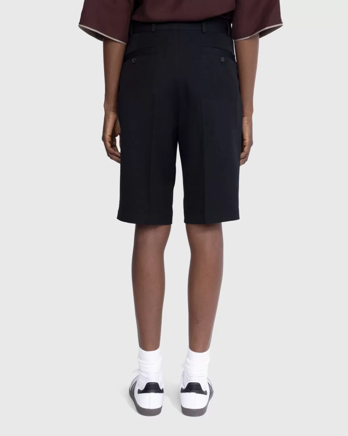 Le Short Rond Carre, Een Korte Versie Van De Traditionele Geklede Broek, Wordt Gedefinieerd Door Ronde En Vierkante Metalen Ringen In De Riemlussen Aan De Voorkant. Het Paar Is Gemaakt Van Wollen Kostuumstof En Heeft Een Verborgen Ritssluiting Met Corozo-Knoopsluiting, Paspelzakken Aan De Zijkant En Achterkant En Plooien Aan De Voorkant.