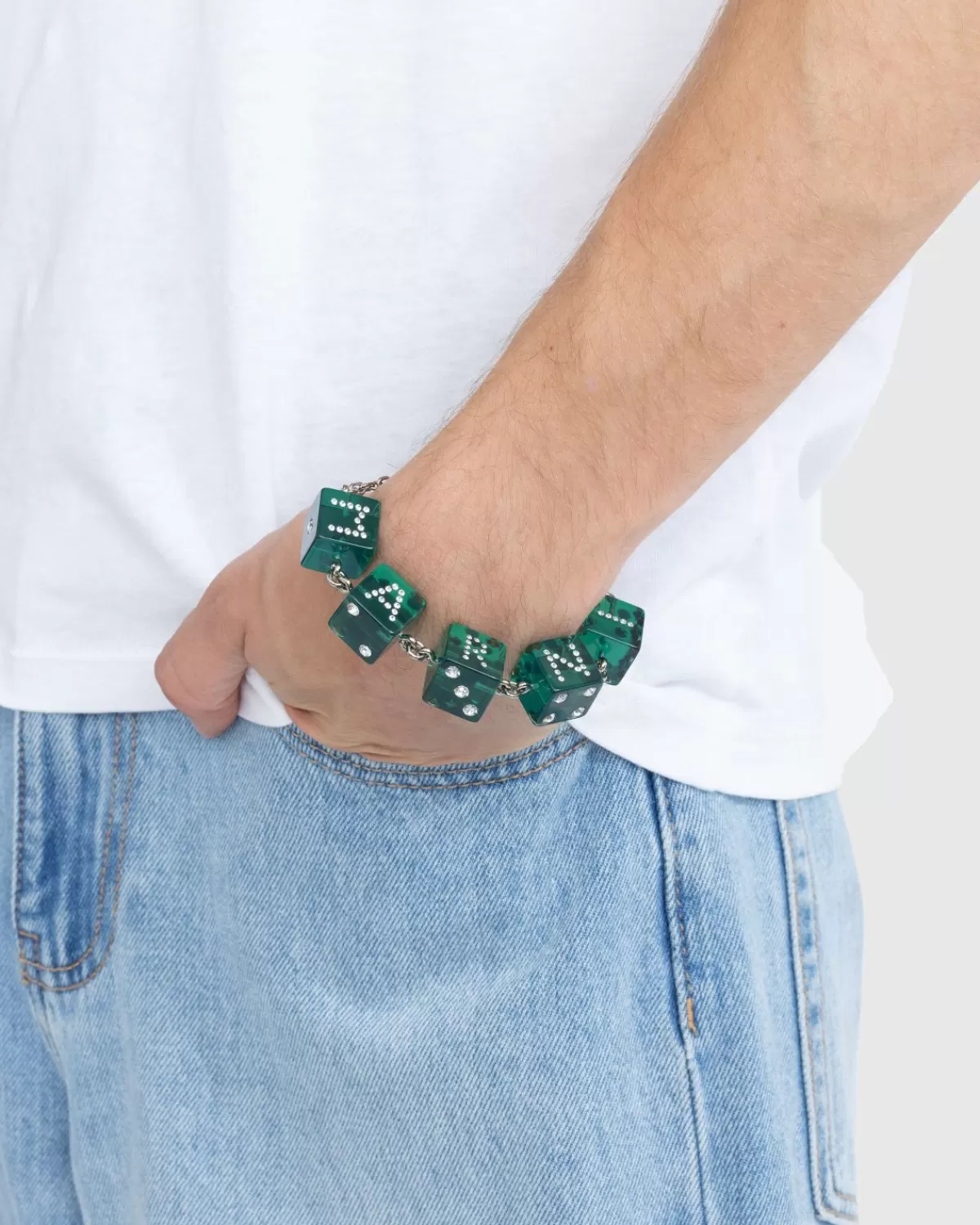 Marni’S Nieuwste Collectie Is Een Ode Aan Vakmanschap, En De Voorliefde Voor Het Maken Van Luxe Stukken Zie Je Hier Met De Dice Charm Bracelet. Het Speelse Accessoire Is Versierd Met Grote Dobbelstenen Van Doorzichtig Hars, Voorzien Van Strass-Steentjes Met Het Logo Van Het Merk En Een Verstelbare Sluiting.