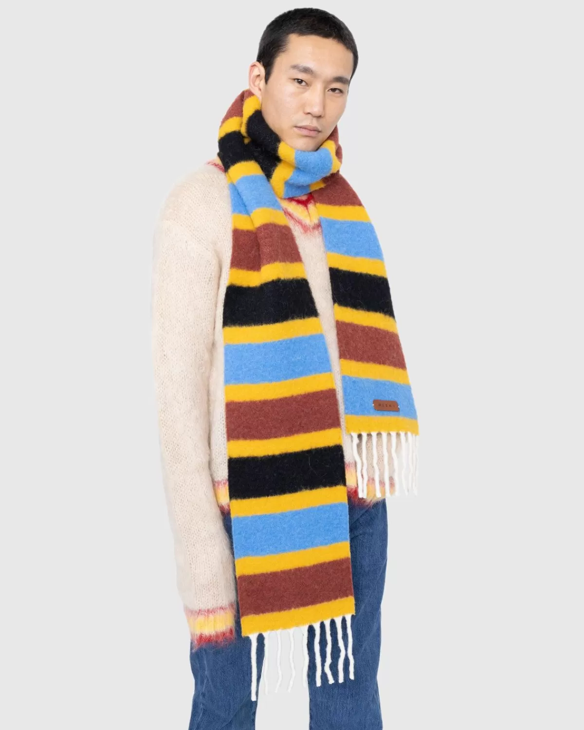 Iedereen Heeft Minstens Één Oversized Sjaal Nodig In Zijn Of Haar Rotatie. Dit Specifieke Model Van Marni Is Afgewerkt Met Franjes Aan De Zoom. De Sjaal Is Gemaakt Van Een Zachte Mohairmix Met Een Pluizige Textuur Voor Extra Behaaglijkheid, Vooral Als De Temperatuur Daalt.