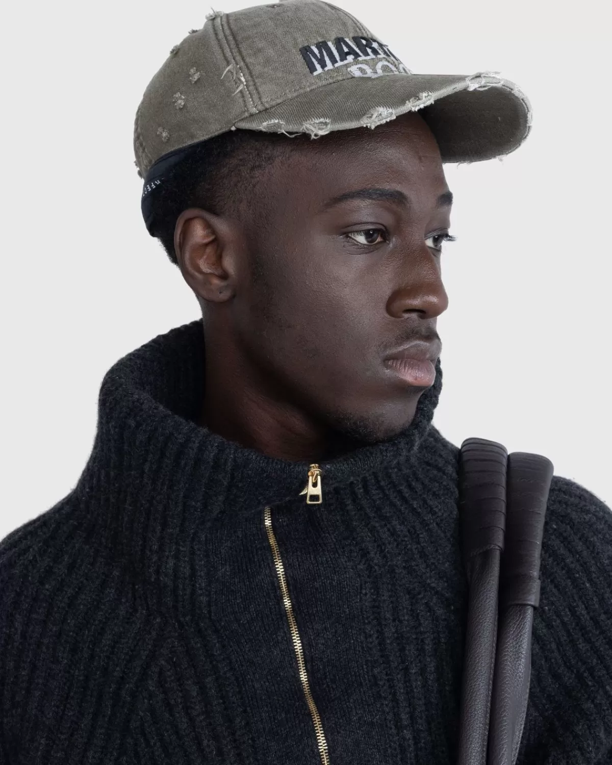 De Rolled Cap Is Een Versleten Hoofddekselstijl Die Wordt Gekenmerkt Door De Opgerolde Details Die De Tape Met Het Merk Martine Rose Onthullen. De Hoed Is Gemaakt Van Biologisch Katoen En Is Verder Verfraaid Met Een Geborduurd Logo Aan De Voorkant En De Band Aan De Achterkant, Terwijl Ook Een Geweven Seizoensbadge Op De Rand Te Zien Is.