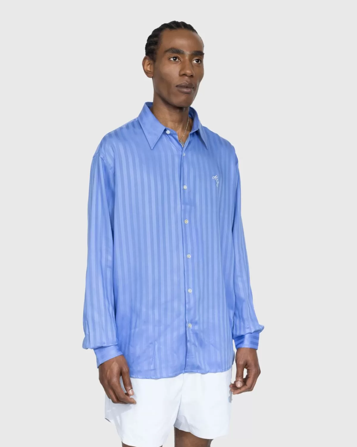 Dit Luxe Overhemd Van Acne Studios Heeft Een Knoopsluiting, Een All-Over Streeppatroon En Geborduurde Logo-Initialen Op …