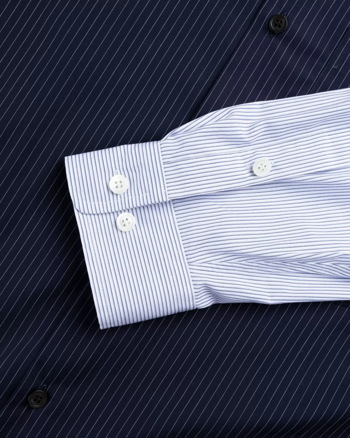 De Carle Is Een Onderscheidend Button-Down-Model Van Dries Van Noten, Dat Dit Seizoen Verkrijgbaar Is In Een Veelzijdige Marineblauwe Kleurstelling. Het Kledingstuk Is Gemaakt Van 100% Katoen En Wordt Gedefinieerd Door Contrasterende Dubbele Mouwen, Terwijl Het Een All-Over Krijtstreepontwerp Laat Zien. Het Overhemd Is Gedetailleerd Met Een Puntkraag, Manchetten Met Knopen En Één Borstzak, En Heeft Een Losse Pasvorm Voor Extra Draagcomfort.